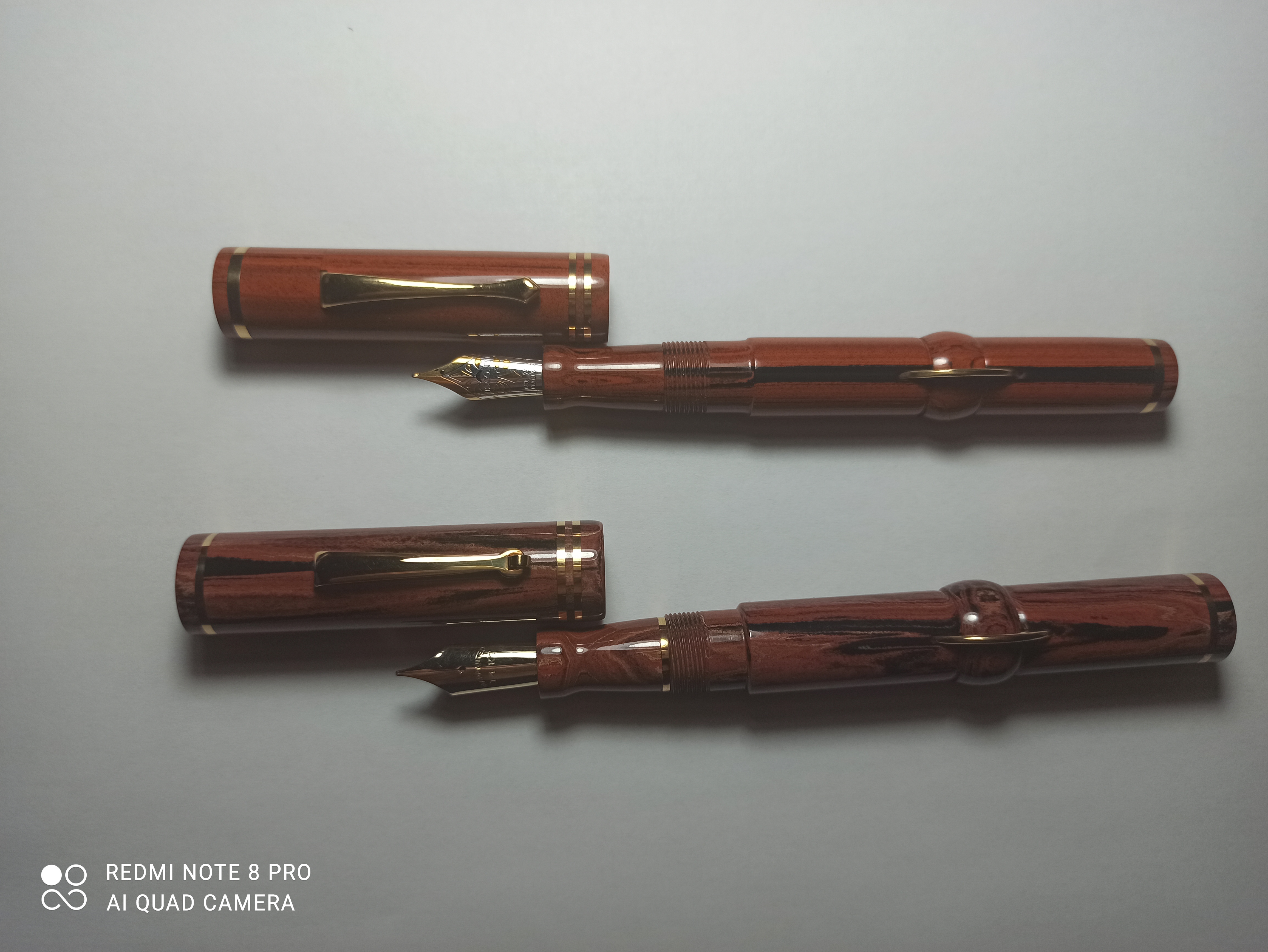 Ho appena finito una crescent filler oversize con pennino n 8 waranted il materiale e ebanite tedesco edizione limitata che si chiama Vesuvio ll in confronto e una Pelikan 800 e una 1000 infine MB baby e waterman 58(purtroppo manchero da Firenze per motivi di lavoro)