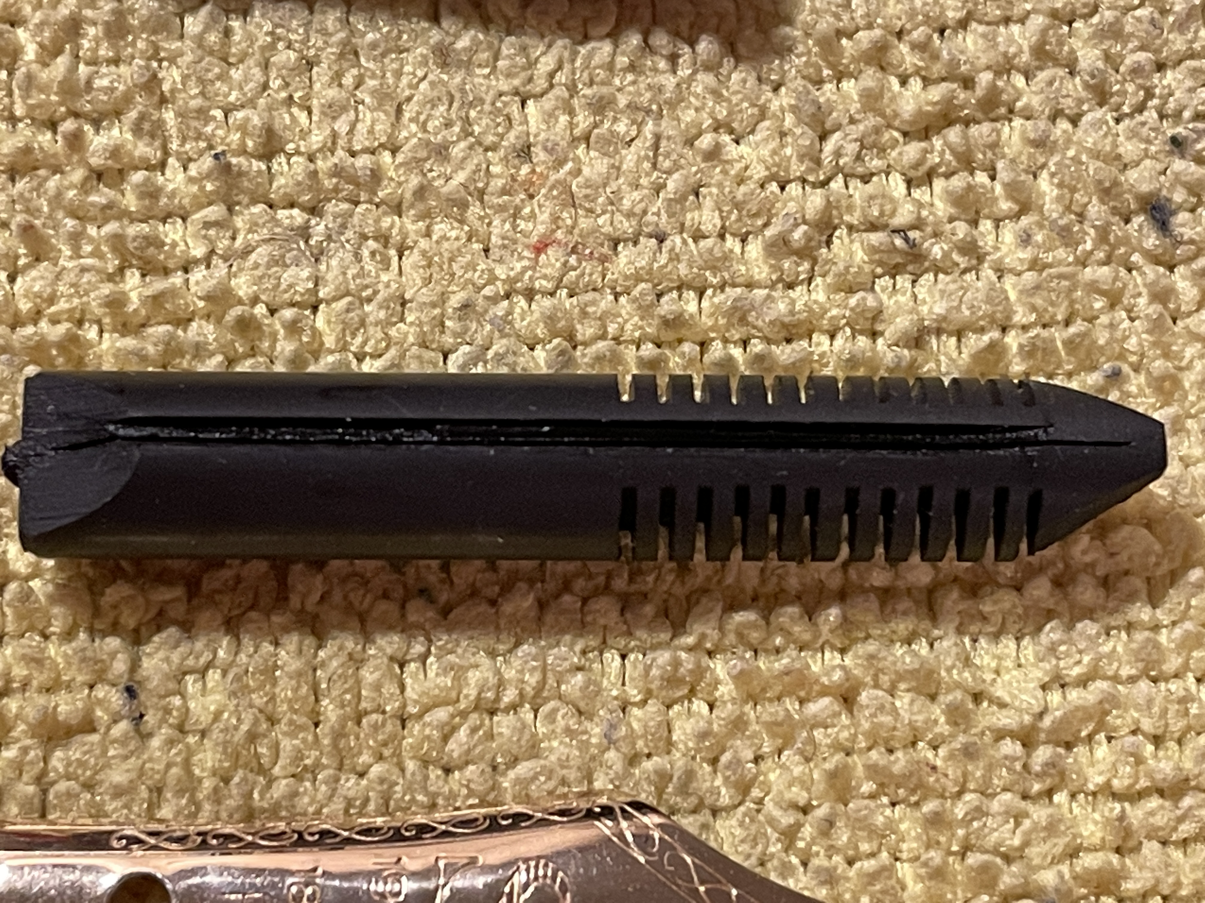 Del pennino che dire… ci sta, anche se non mi piace esteticamente, se è realmente artigianale va benissimo, ma si vede che non è “omogeneo” la sua curvatura cambia nei vari punti del pennino (si, è leggermente curvato come quello della 3776), e si vede chiaramente con i riflessi. Penso alla problematica sollevata da un utente riguardo ad un accumulo di inchiostro sopra al pennino, la mia in quel punto ha una “piega”, un cambio di curvatura, ma non ha problemi di accumulo (a cui non baderei), mi vien da pensare che le incisioni siano ottenute “stampandole” a pressione con dei punzoni, da li la non omogeneità.