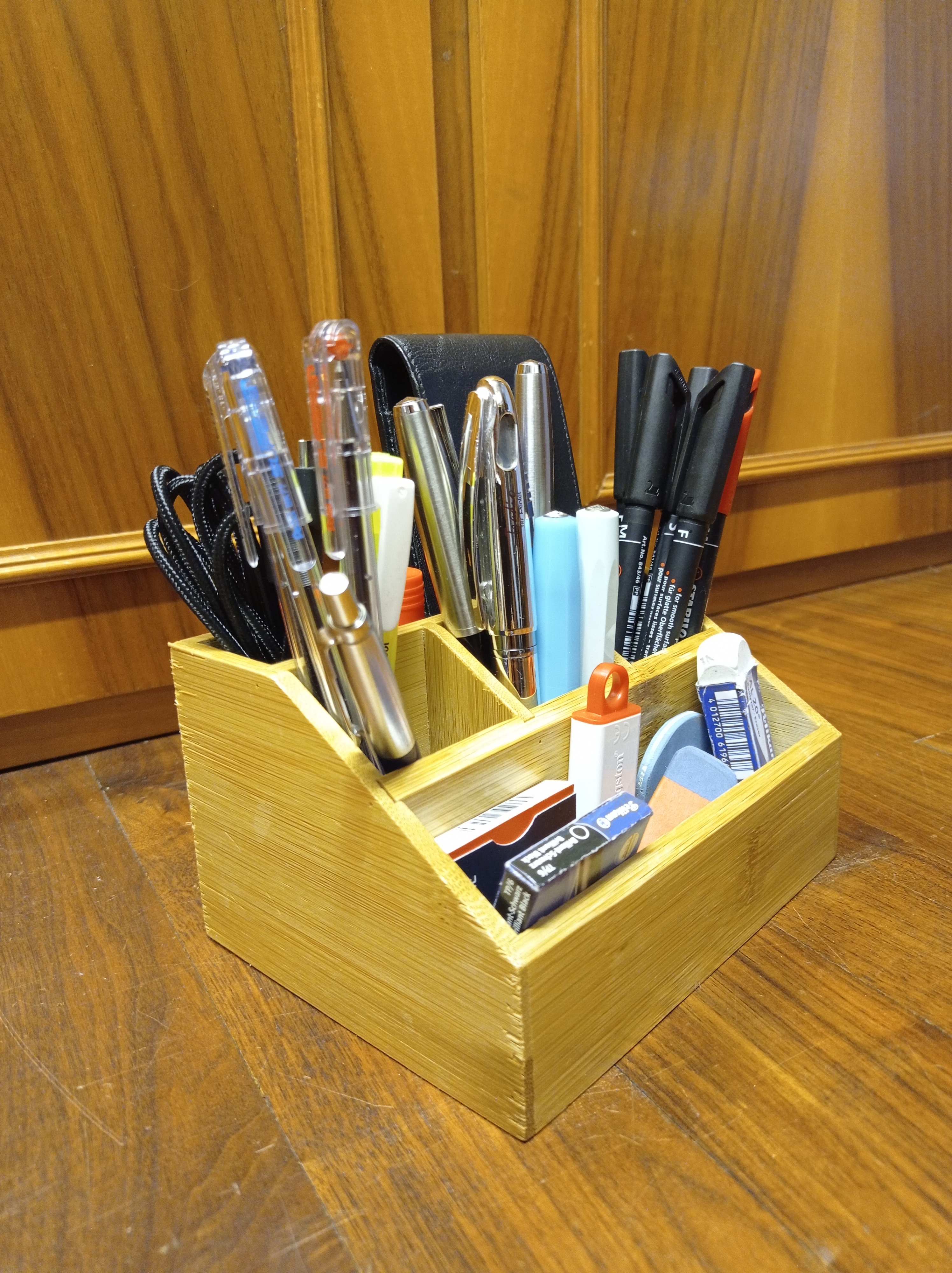 Per 5 Euro mi sono fatto acquistare da mia moglie nel negozio cittadino della catena danese Tiger un oggetto che nasce come porta trucchi in legno, ma che in vetrina ho immediatamente immaginato pieno di penne e accessori.