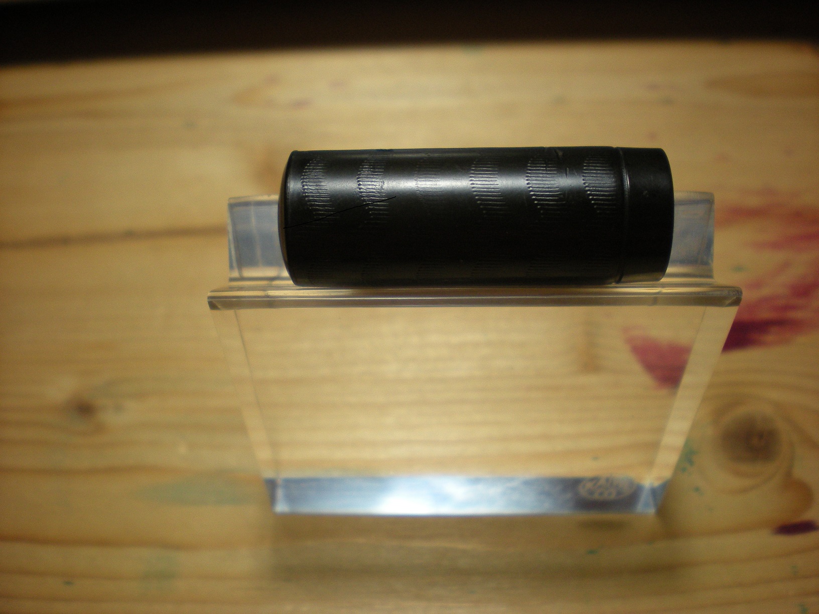 qui si vede il foro di sfiato contrapposto all'altro, non ci sono "feritoie" per il fissaggio di un fermaglio