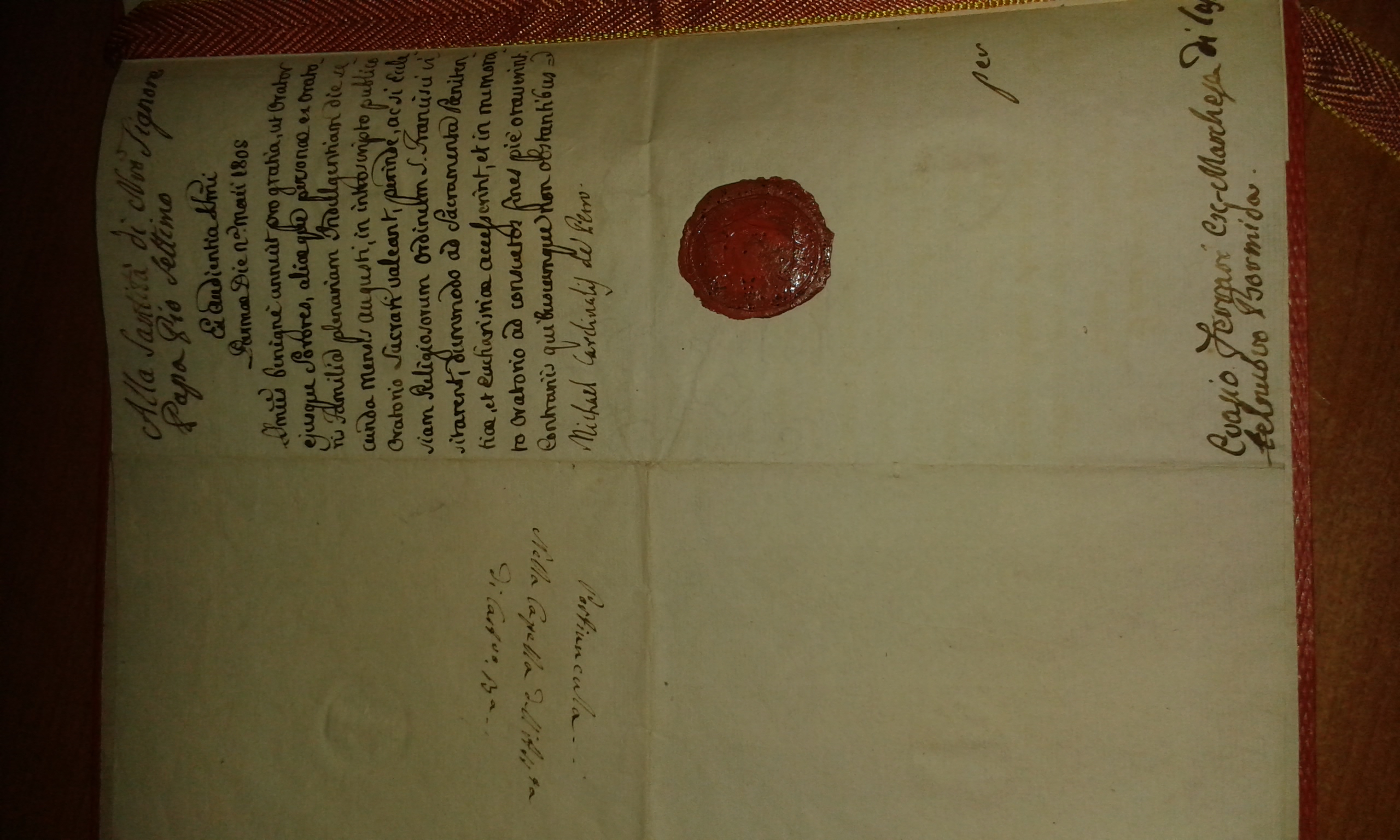 Tra l'altro la cosa che rende interessante codesto documento è il fatto che l'incipit mi sembra dica "Ex audientia SSmi (Sanctissimi)", cioè da udienza privata col Papa. A questa udienza ci va il cardinale Penitenziere Maggiore....che però da quello che ho trovato non poteva ancora essere il Michele Di Pietro!