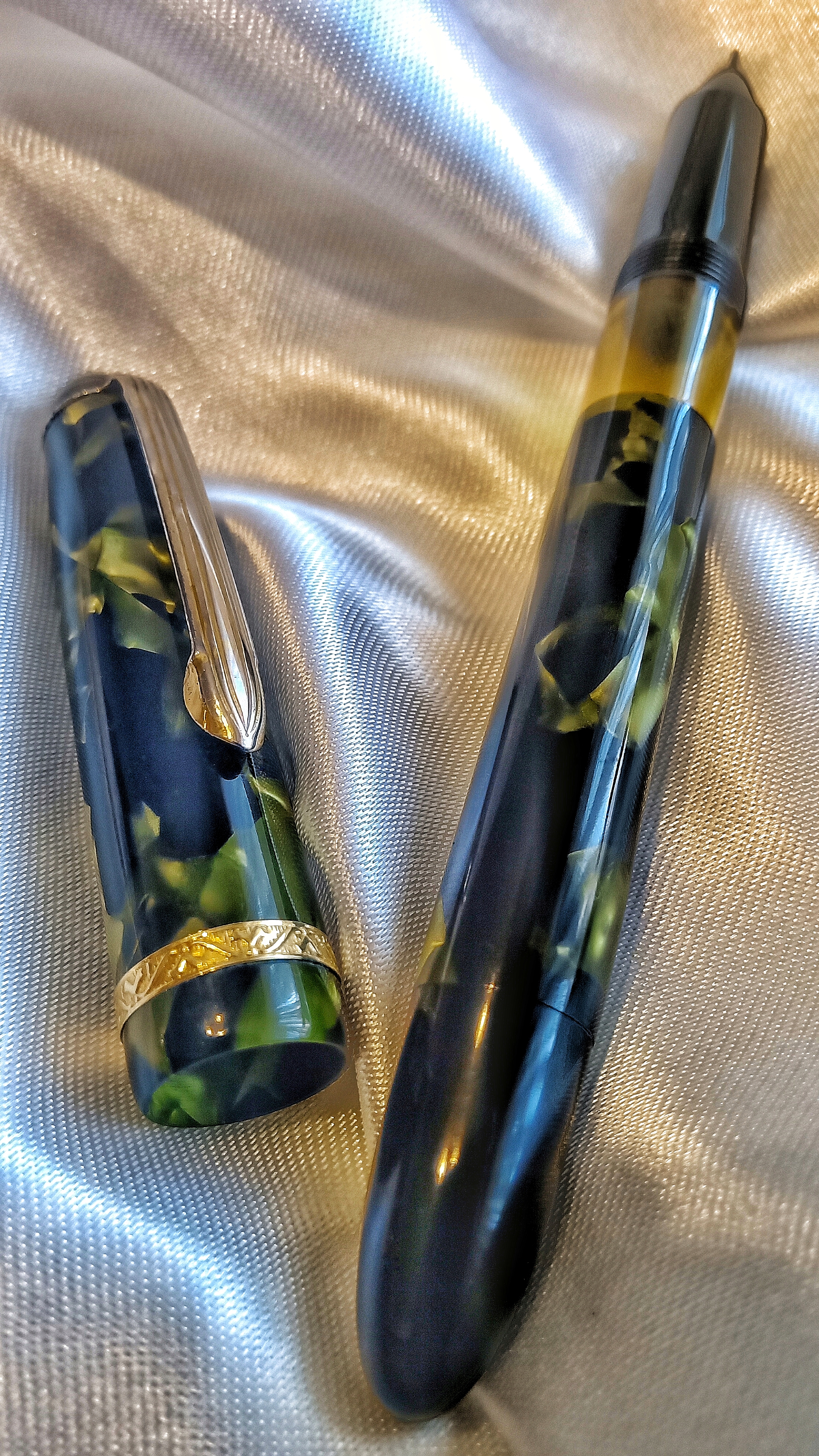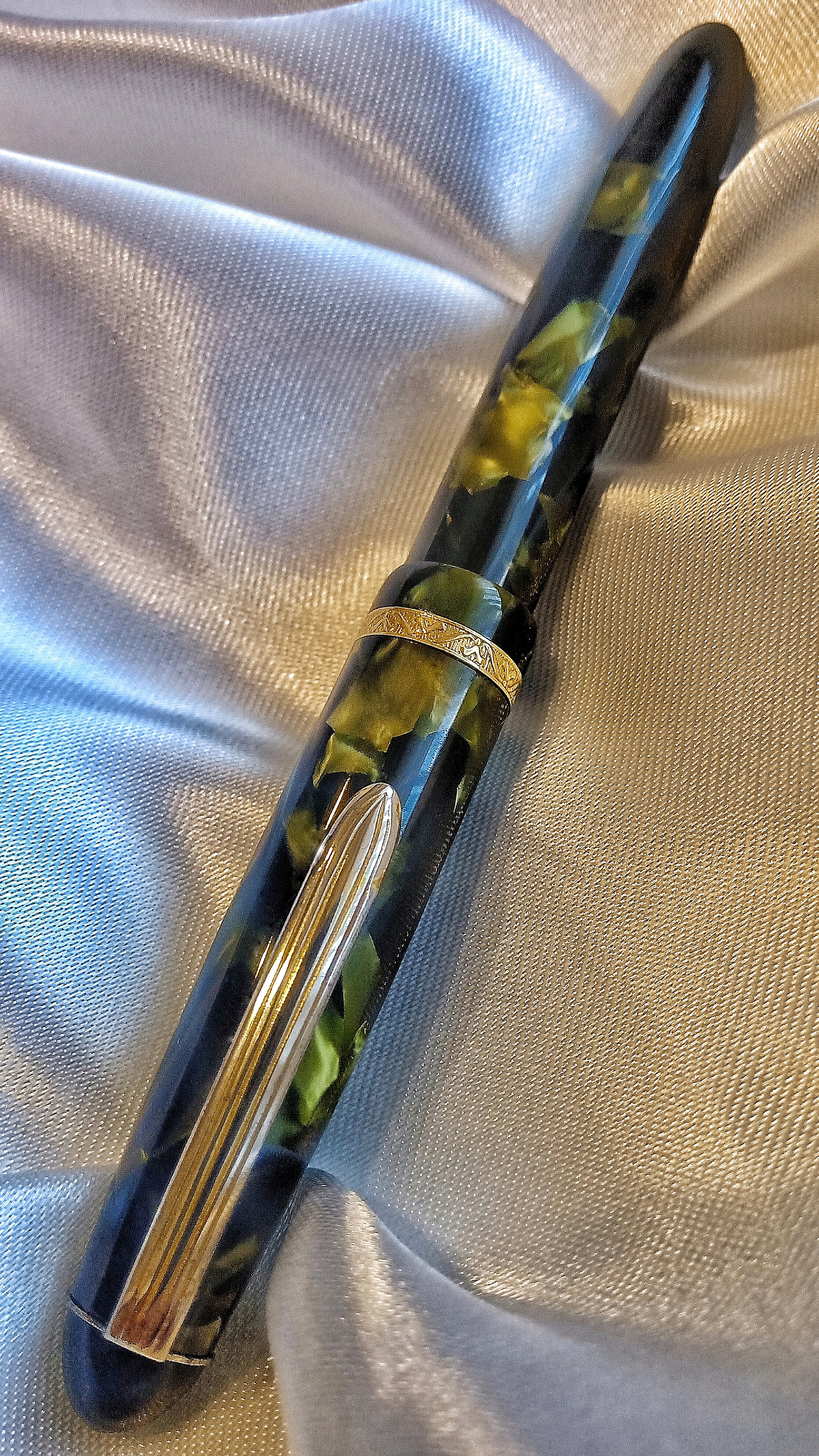 Vorrei concludere la settimana presentando quest'ultima penna capilografiche in un bel verde perla, forse per i suoi materiali, risalente alla fine degli anni '40 (pistone in sughero e corpo in celluloide).