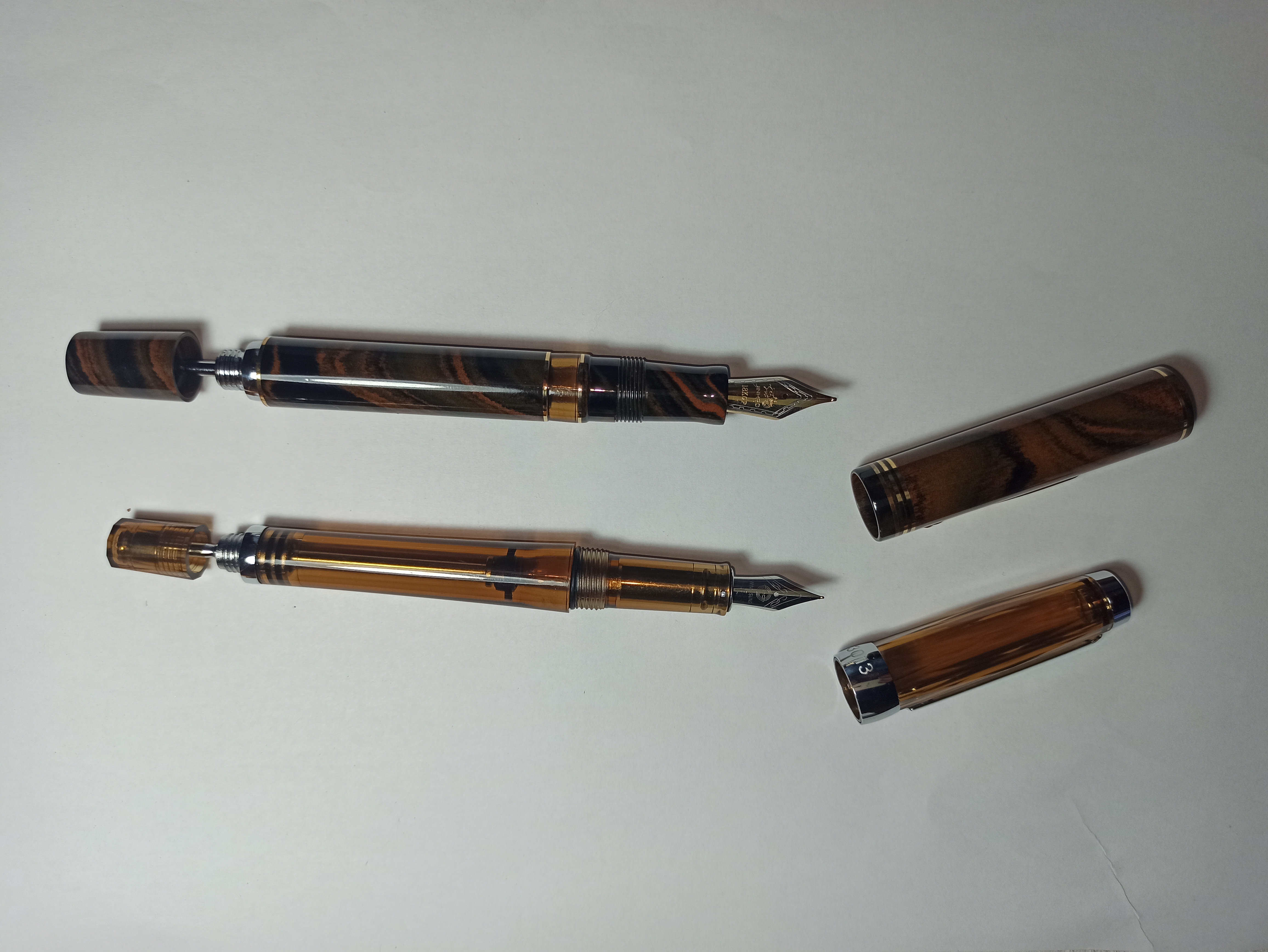 Forse cosi vi posso dare un idea migliore di che ho fatto per quando riguarda il pennino io dirrei bock d'orosansenri ha scritto: ↑venerdì 3 dicembre 2021, 21:56Molto bella, adesso ho capito, hai usato il meccanismo interno a stantuffo di una Wing sung (698?), belle linee, piccolo gradino sezione-fusto ma molto ben smussato, sembra molto comoda da tenere in mano.giorgiogreco ha scritto: ↑lunedì 29 novembre 2021, 13:54 Ecco la penna finita la fillettatura e di 13 mm e ha 7 verette sottili il pennino e jinhao per mancanza di uno in oro e solo una piccola parte transparente e del originale wing sung tutto il resto l'ho fatto io