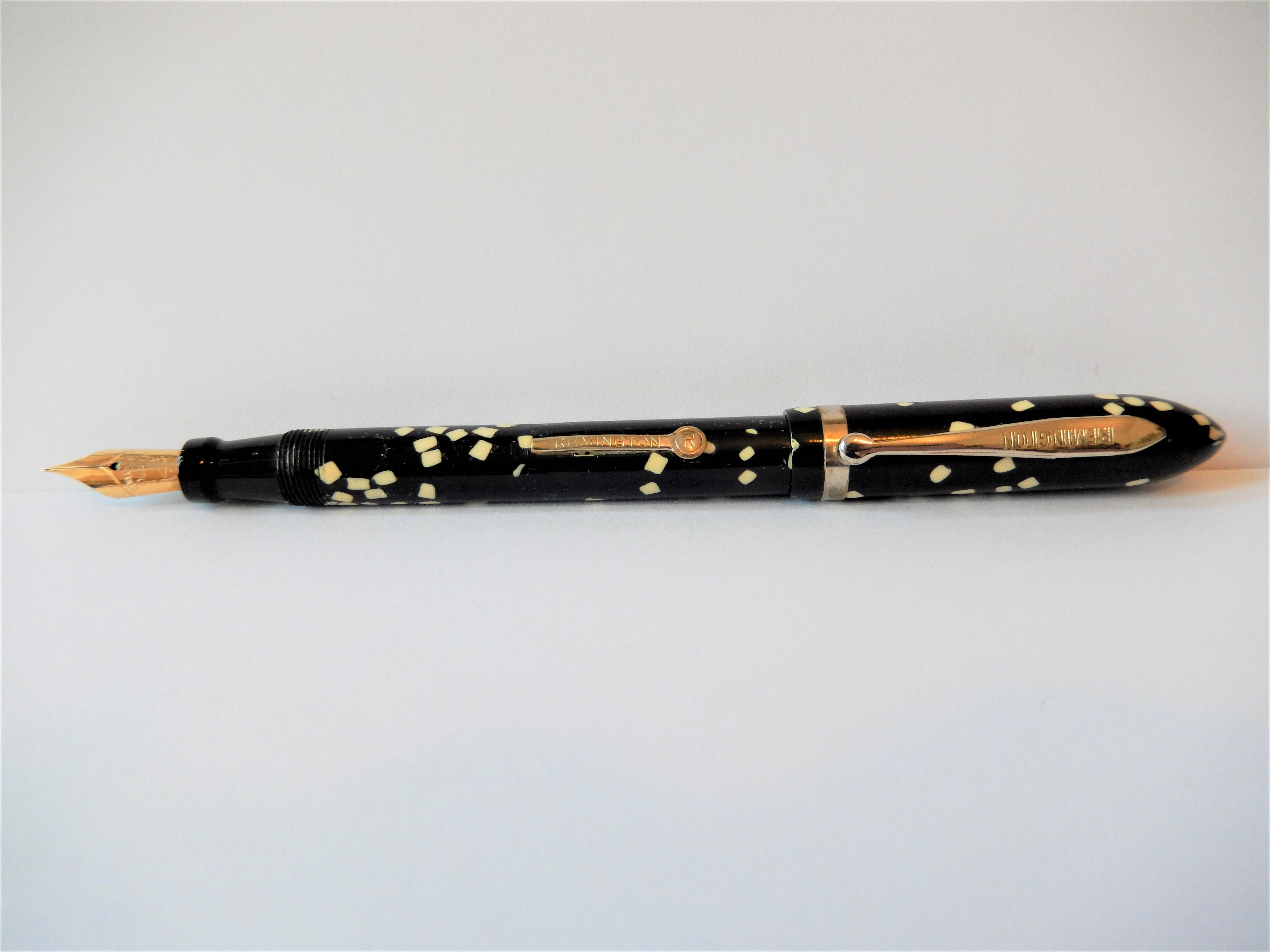 Ciao, ne ho una prodotta dalla Remington Pen Company con sede al 458 Broadway New York, verso la metà degli anni trenta. Pur essendo una marca di seconda fascia ha prodotto anche belle penne. Questa mia in celluloide nera con coriandoli avorio e caricamento a leva è riprodotta sul libro " la Stilografica americana" pubblicato da Pineider. Buona giornatarrfreak63 ha scritto: ↑domenica 6 febbraio 2022, 17:18 Mi sono imbattuto in una stilo di questa marca e l'ho presa al volo. Riempimento a siringa. Corpo trasparente a meta' anche se ingiallito. Materiale? Boh! Sui forum noti non se ne sa molto, a parte che faceva delle penne denominate 'combo' con la stilo da una parte e matita dall'altra.
