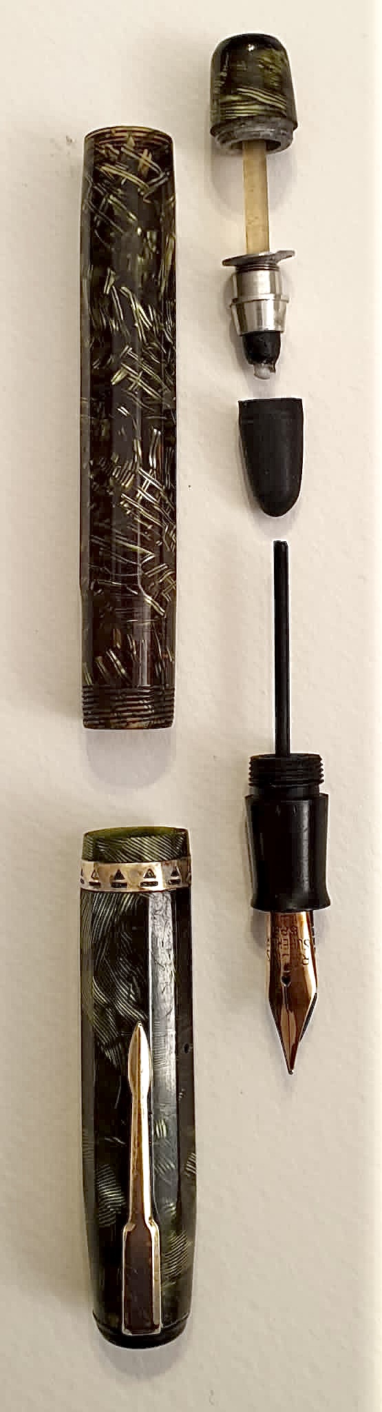 Radius anni ‘30 con caricamento a pompa; celluloide del corpo penna, trasparente.