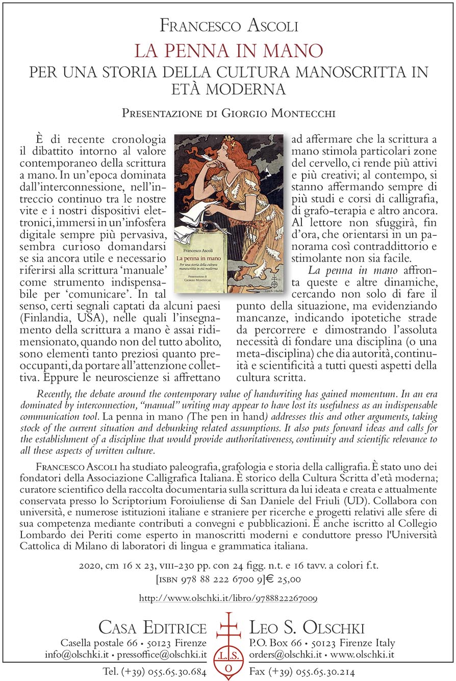 La penna in mano. Per una storia della cultura manoscritta in età moderna