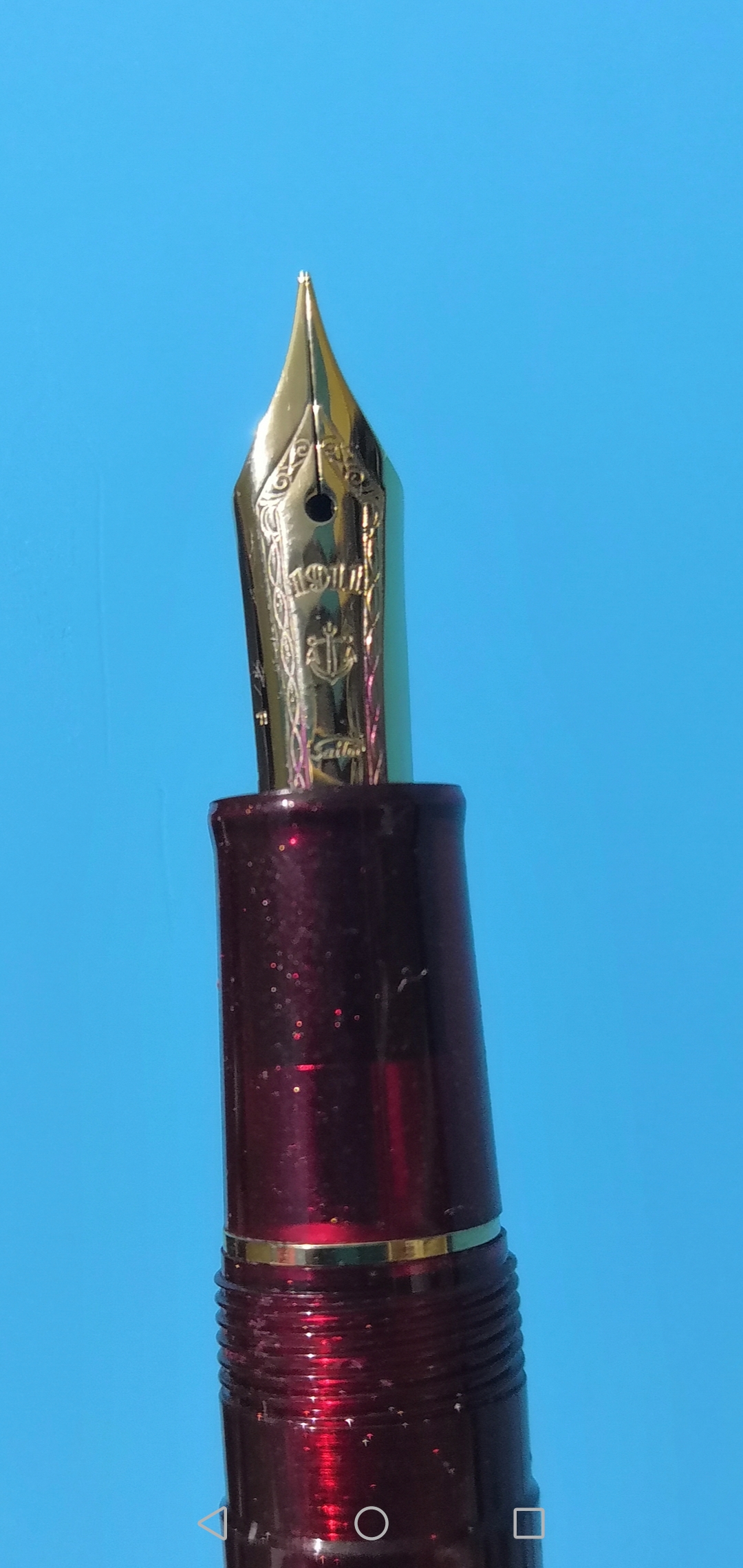 Purtroppo non ho una Sailor con pennino in oro, e non posso fare una comparativa. Comunque, il pennino della Shikiori che ho è questo, un fine chirurgico e di cui sono molto soddisfatto