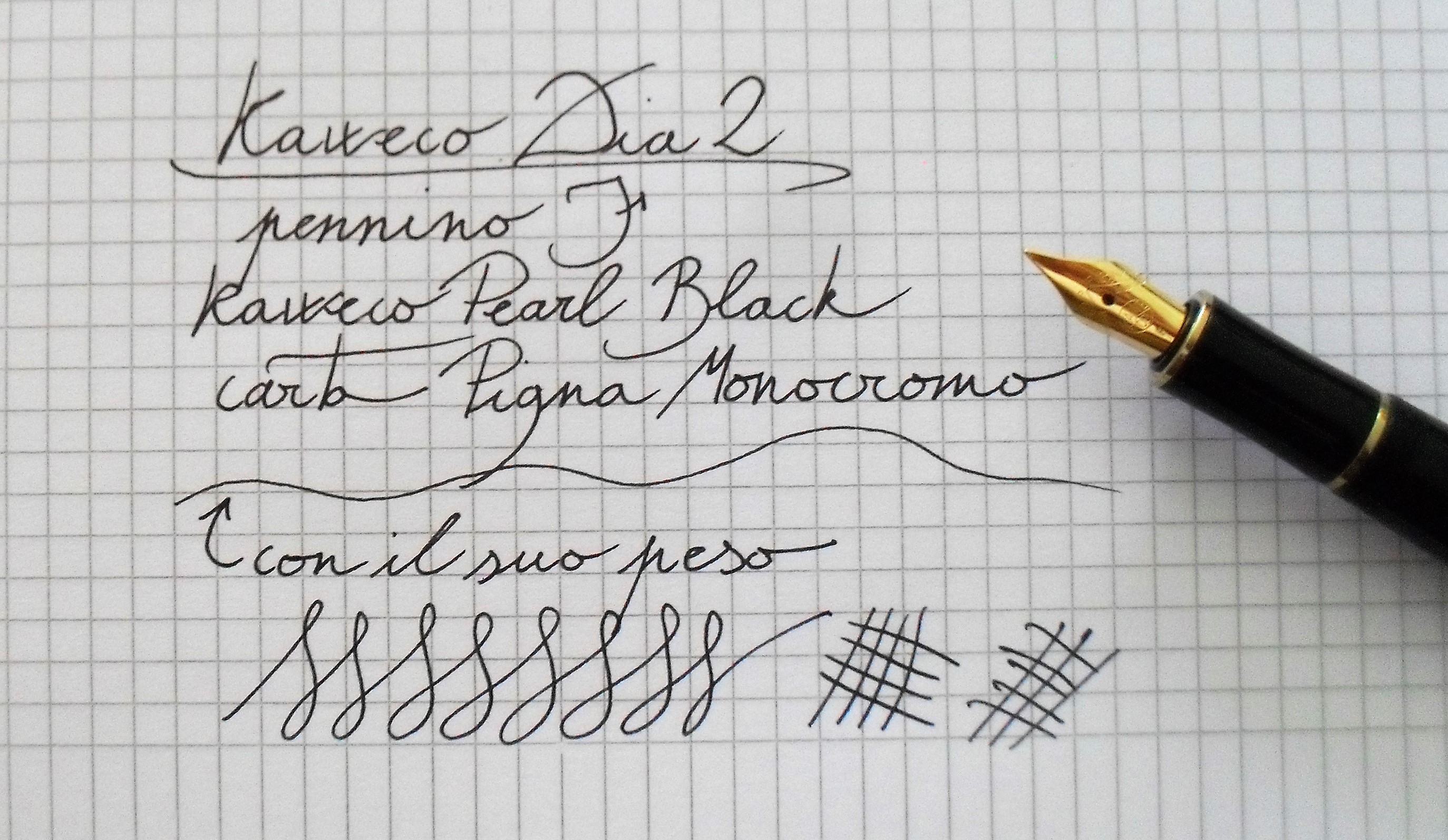 Col tempo, riguardando quella bella penna, trovo sempre meno motivate le ragioni per montare un pennino più grande dell'originaleVedo poi una prova di scrittura fatta col Kaweco Black: inchiostro ottimo sotto tutti i punti di vista ed inoltre lascia un tratto vivido e davvero nero.