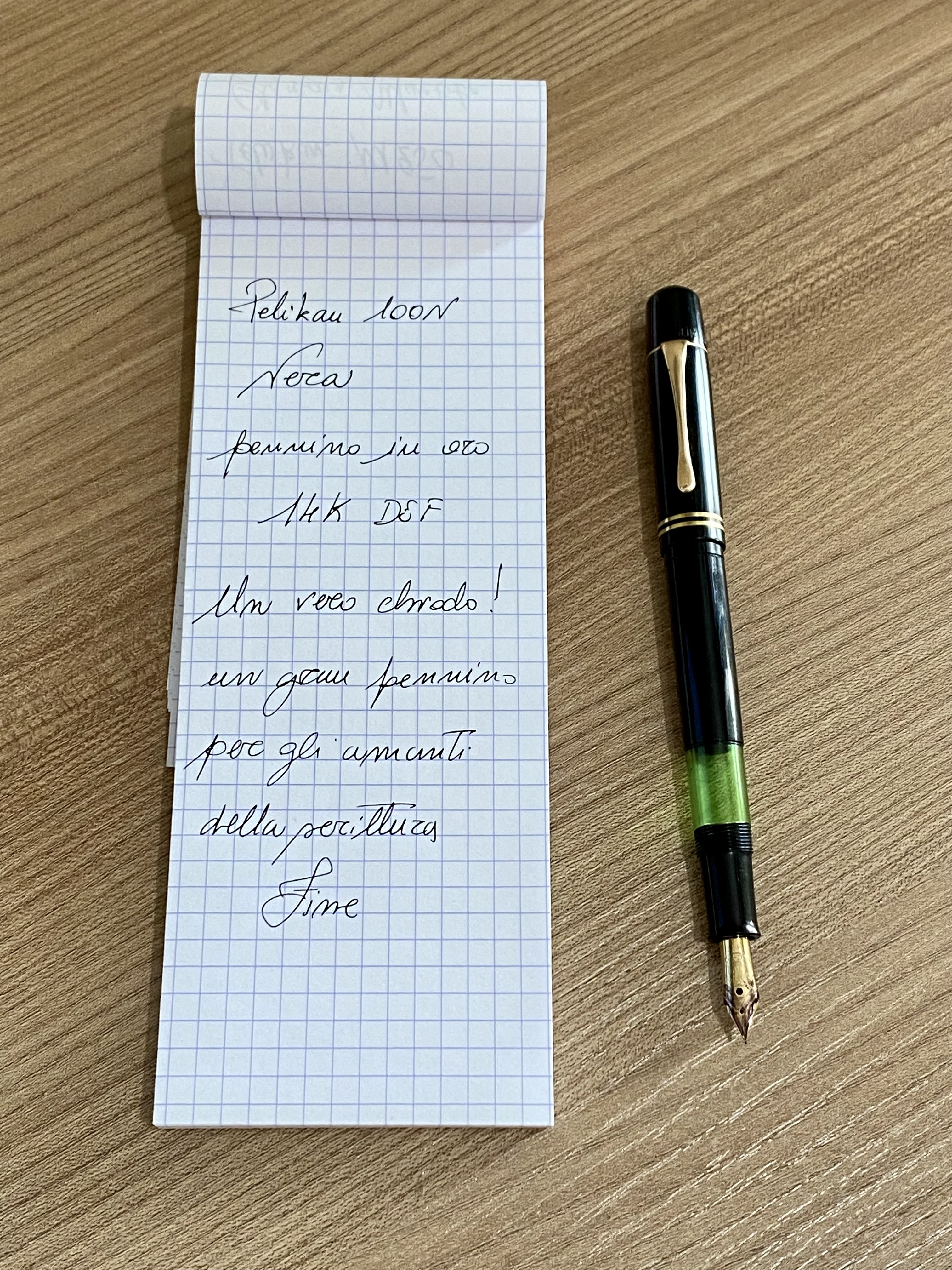 Esatto, come scrivevo sopra “ Il pennino che la equipaggia è un 14K gradazione DEF ossia un pennino EF per Carta Carbone (Durchschribe). “balthazar ha scritto: ↑sabato 9 luglio 2022, 20:42 Bella recensione: graziePenna molto molto bella ( a mio parere ) e la livrea nera la rende ancor più carina. Sto cercando da un pò di tempo di acquistare una Pelikan d'epoca con quel pennino col doppio foro che mi intriga molto (se non ricordo male è un pennino extra rigido che veniva usato per l'uso con carta copiativa, quindi permetteva di premere bene sul foglio).