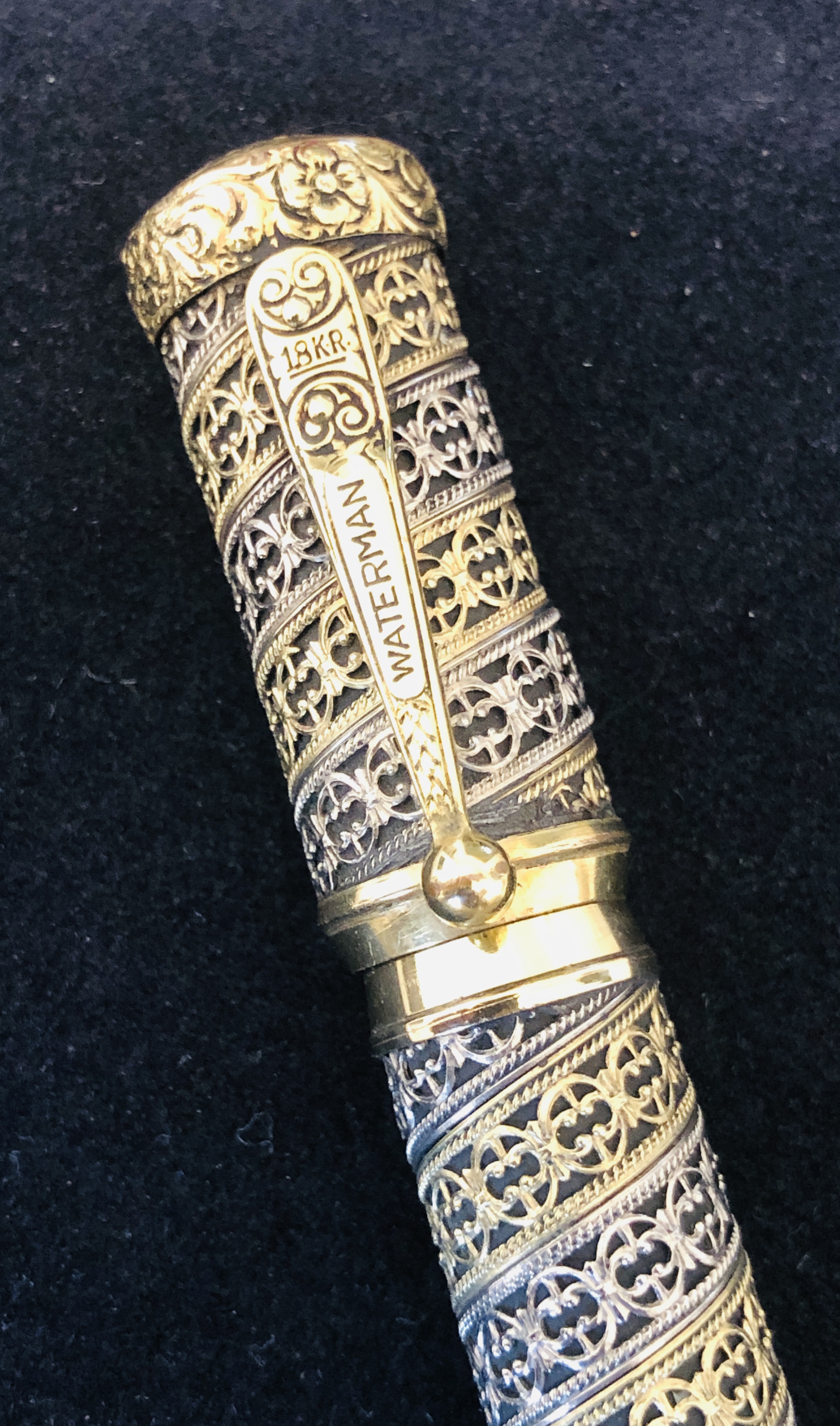 fabbale09 ha scritto: giovedì 21 luglio 2022, 16:31 Sontuosa lavorazione a galleria bicolore per questa waterman, impreziosita anche da una lavorazione sulla testa del cappuccio.