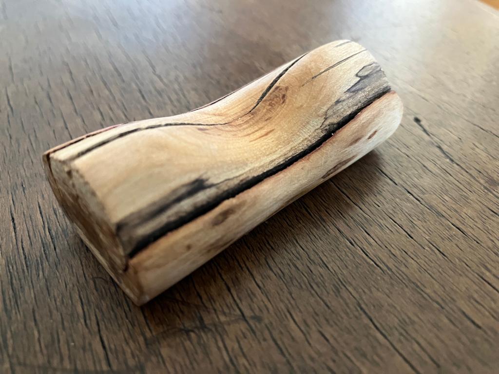 ho scelto volutamente come primo pezzo un pezzetto di ciliegio con quelle strane crepe che mi sembravano decorative