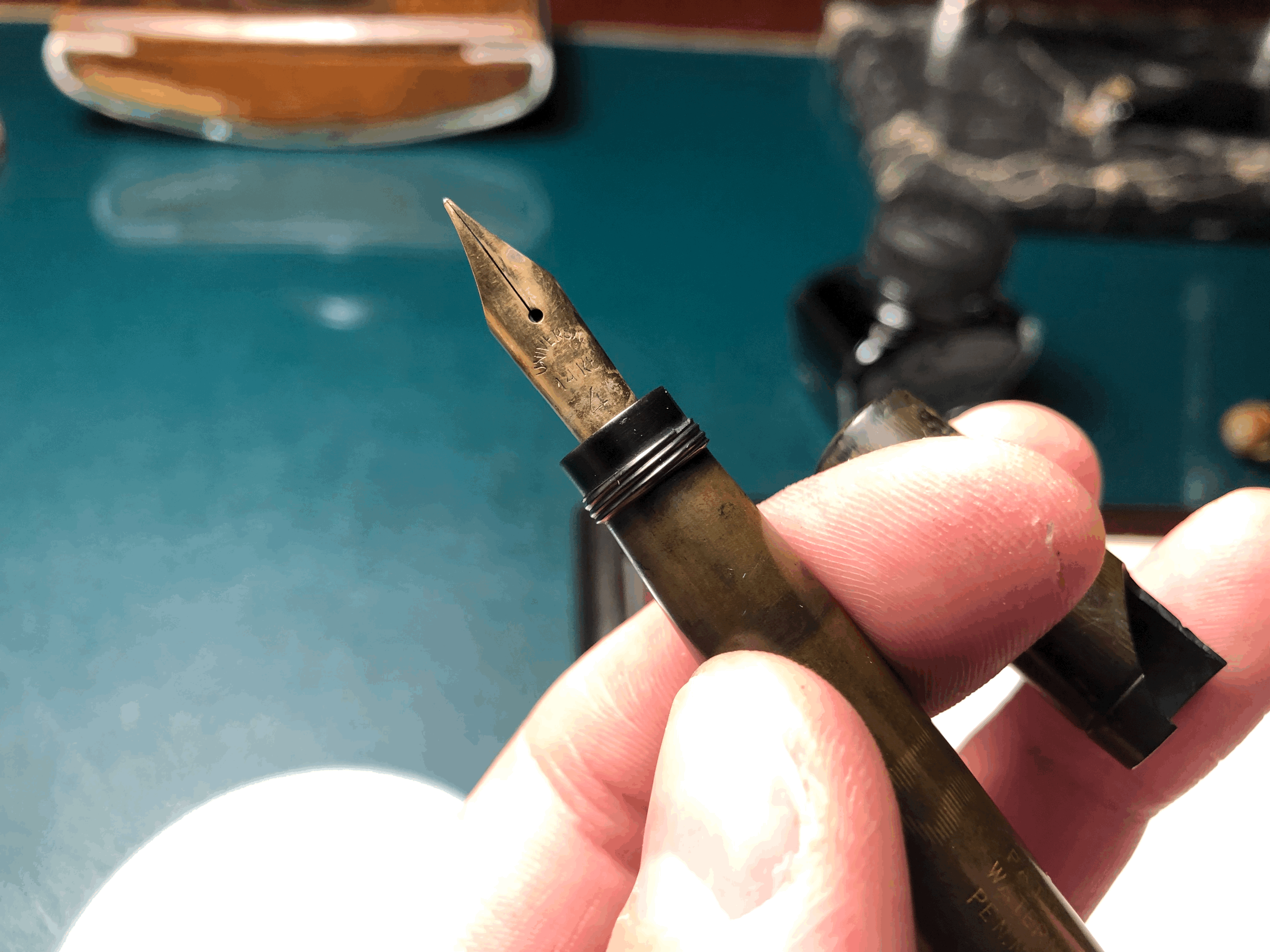 • Pennino sostituito; questo è il problema minore perché comque ci si può scrivere. Si tratta di un Universal in Oro 14 Kt numero 4;