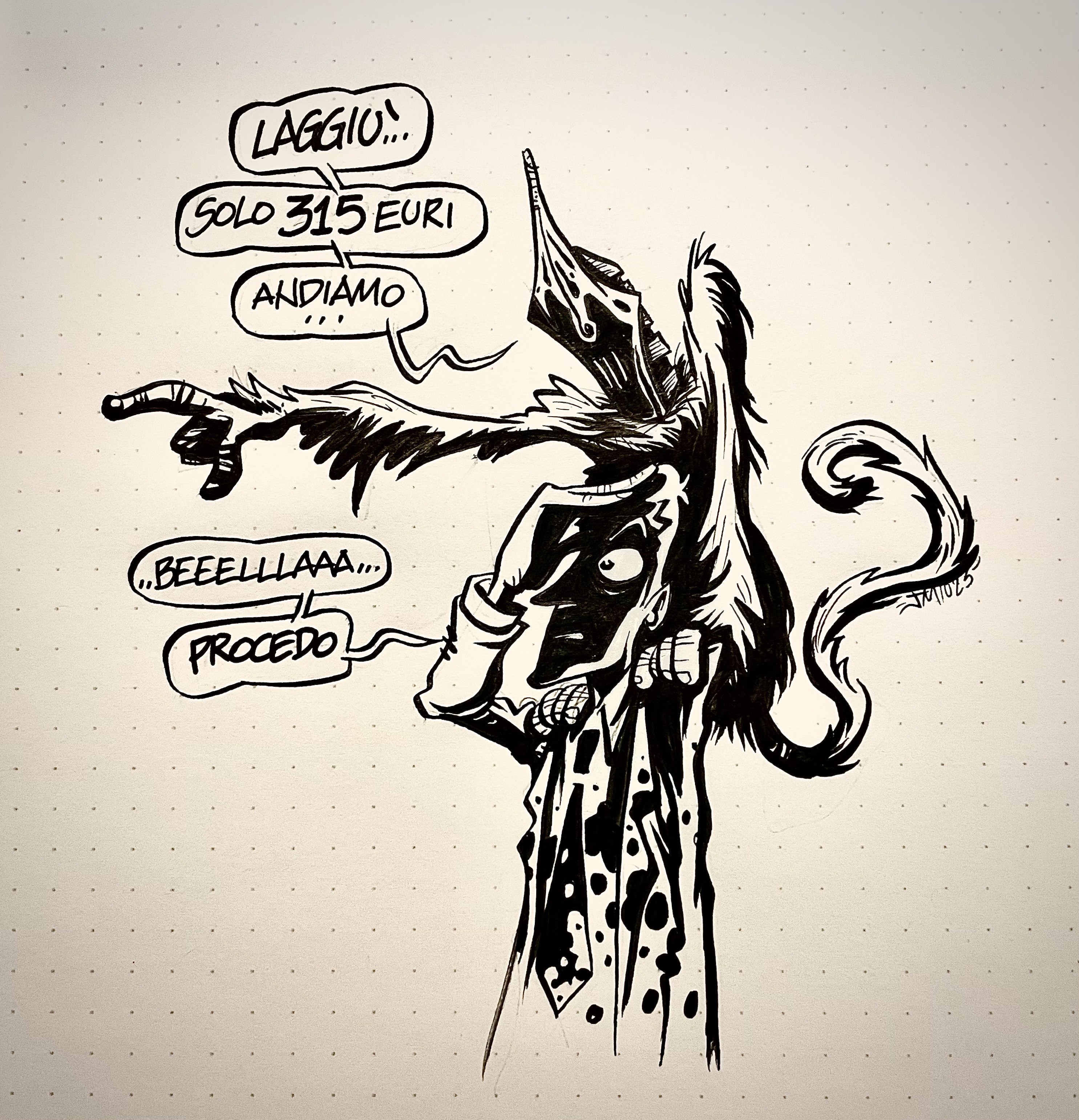 Terza e ultima puntata della scimmia. Con bavetta e in balìa dell'avversario...Jaconib ha scritto: ↑giovedì 4 maggio 2023, 21:17Grazie! Se riesco nei prox gg ne faccio un altro con la bavetta e bombatissimo…lucacecchi ha scritto: ↑giovedì 4 maggio 2023, 12:00 Stupendo... tutto inzaccherato d'inchiostro! Però gli manca la bavetta da ipnotizzato.