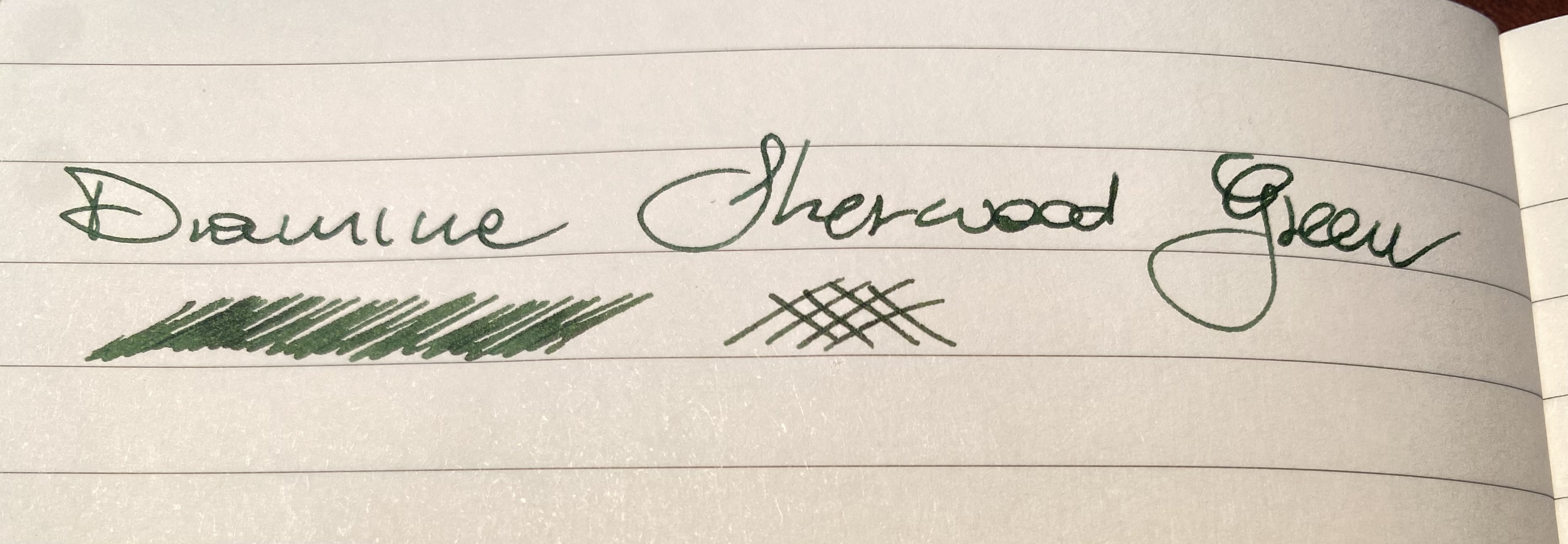 Lo Sherwood Green non è male, come tonalità è nelle mie corde, personalmente lo vorrei un pelo più scuro. Ho guardato il green black di Diamine ma è più freddo come tonalità.