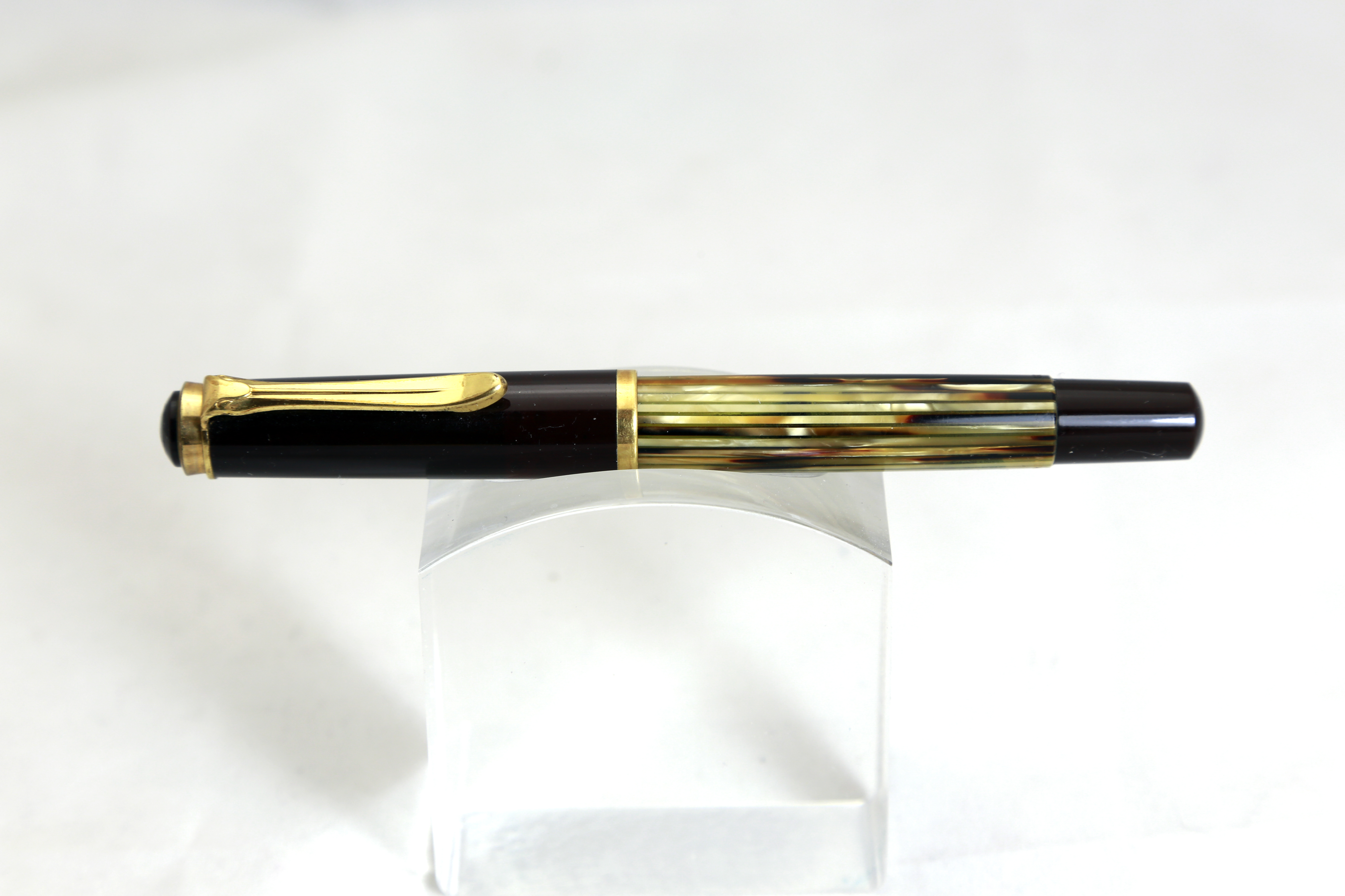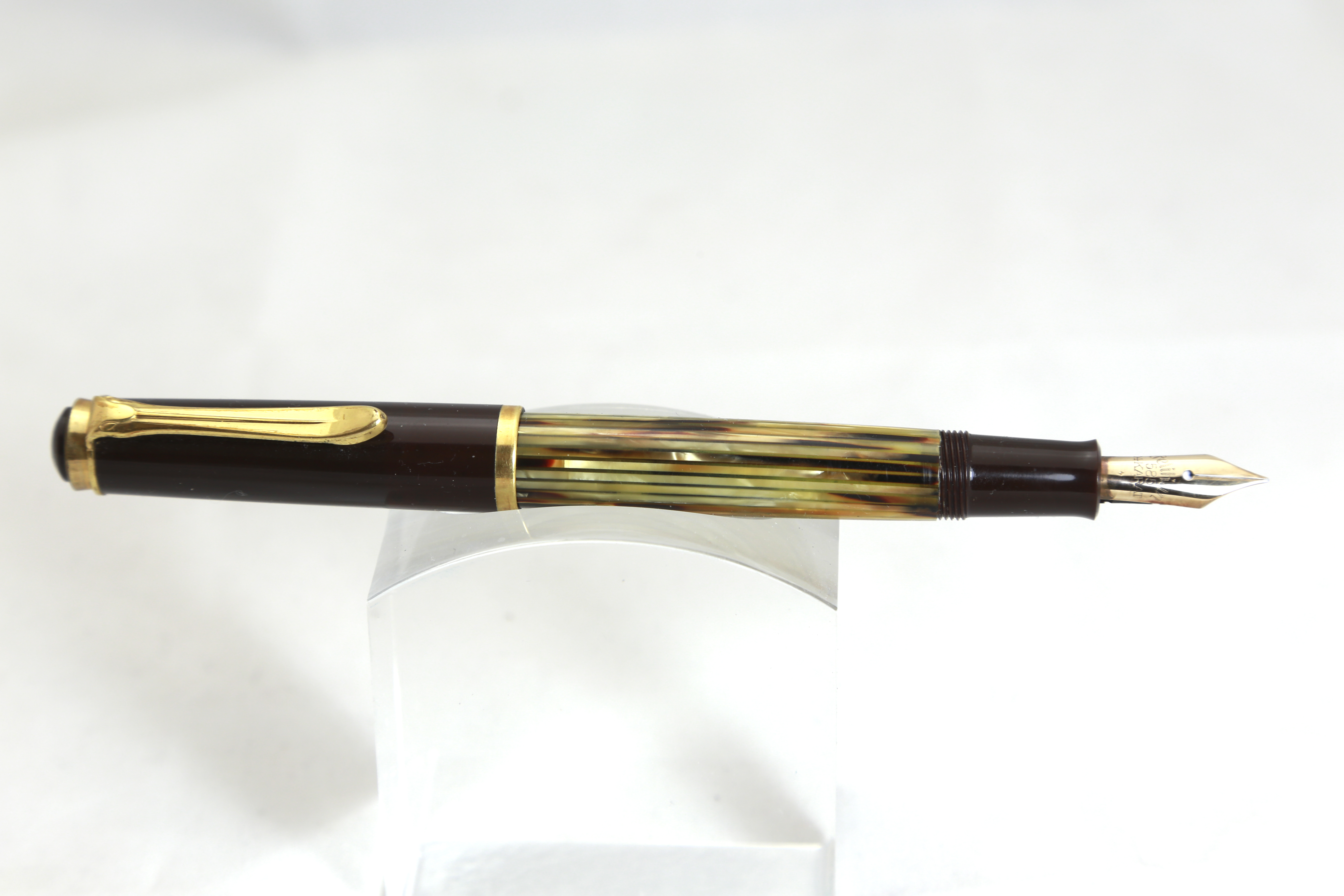 Coeva a quella rinvenuta da Francesco viewtopic.php?t=30360 è questa 400 tortoiseshell-brown striped, che il meraviglioso e utilissimo sito specifico http://www.ruettinger-web.de/e-pelikan-modell-400.html dei modelli Pelikan data 1951-1954.