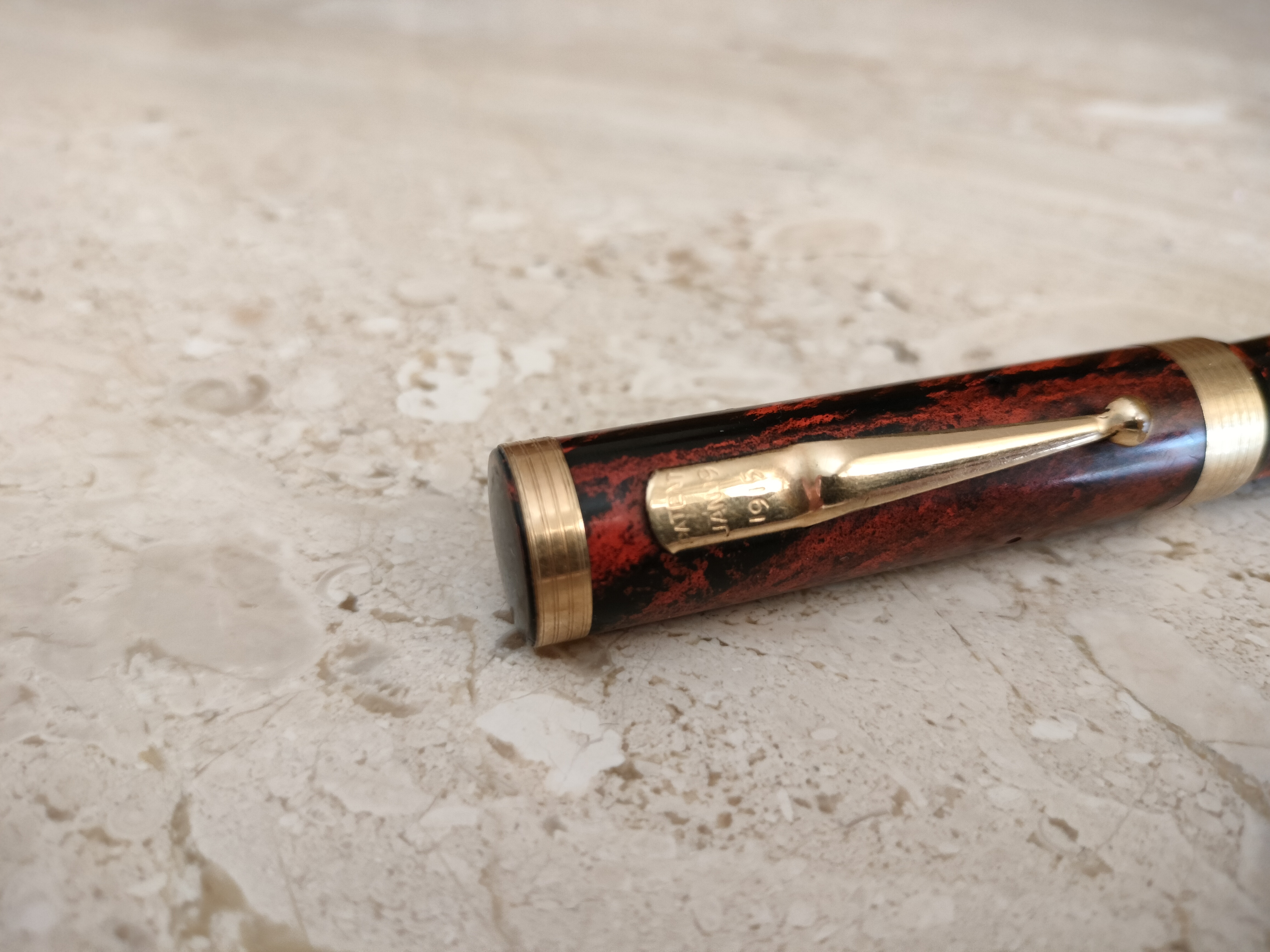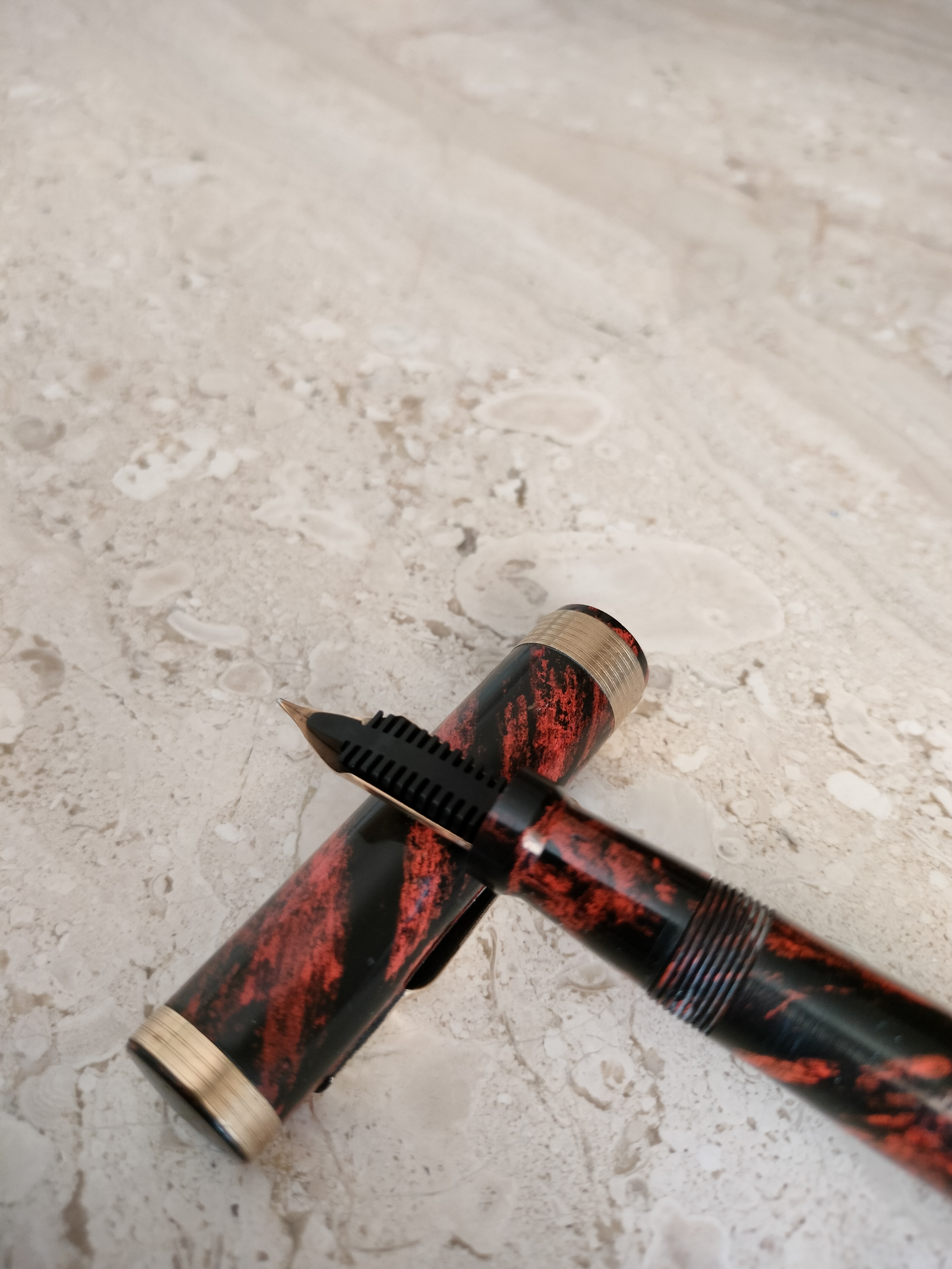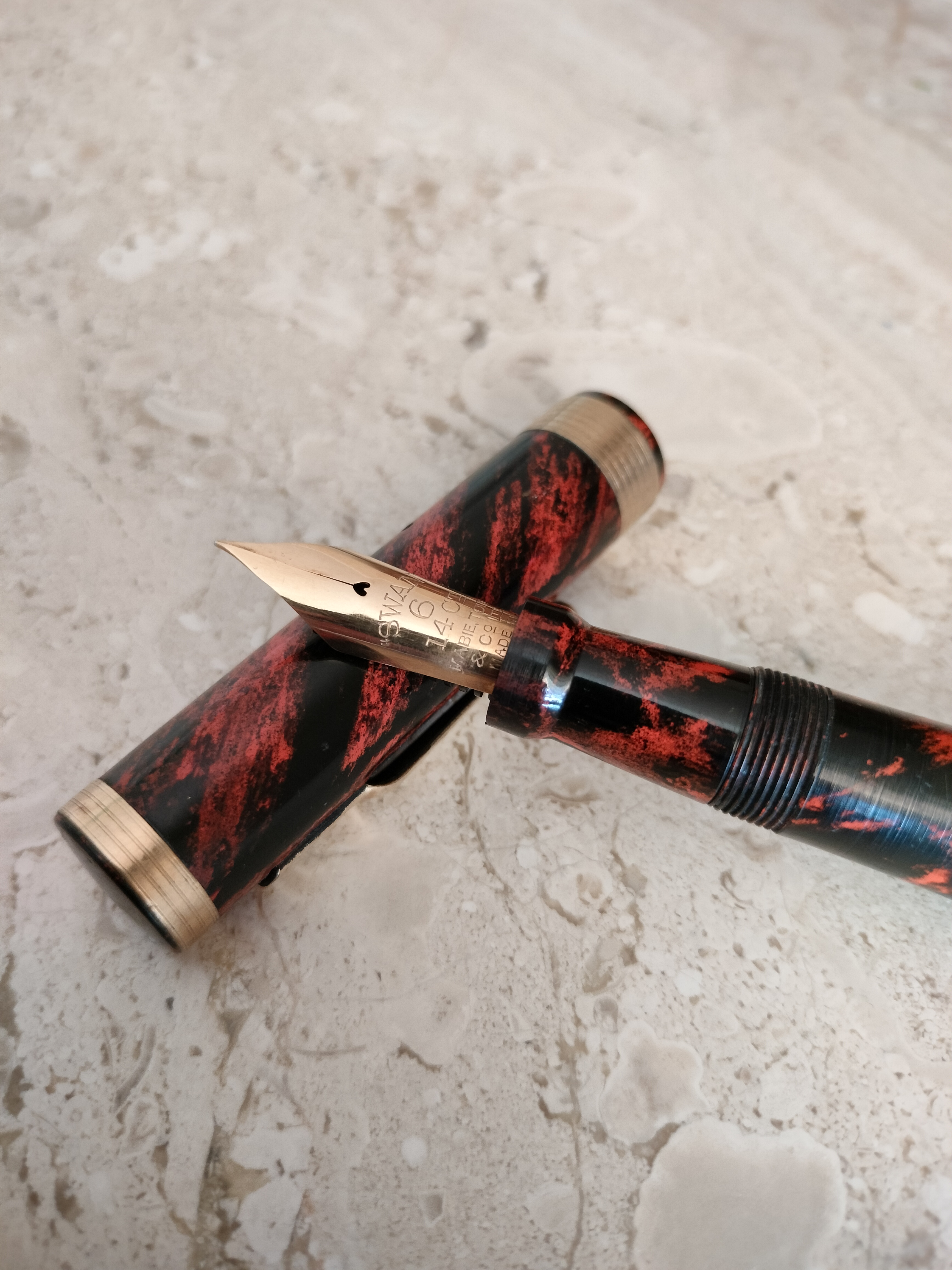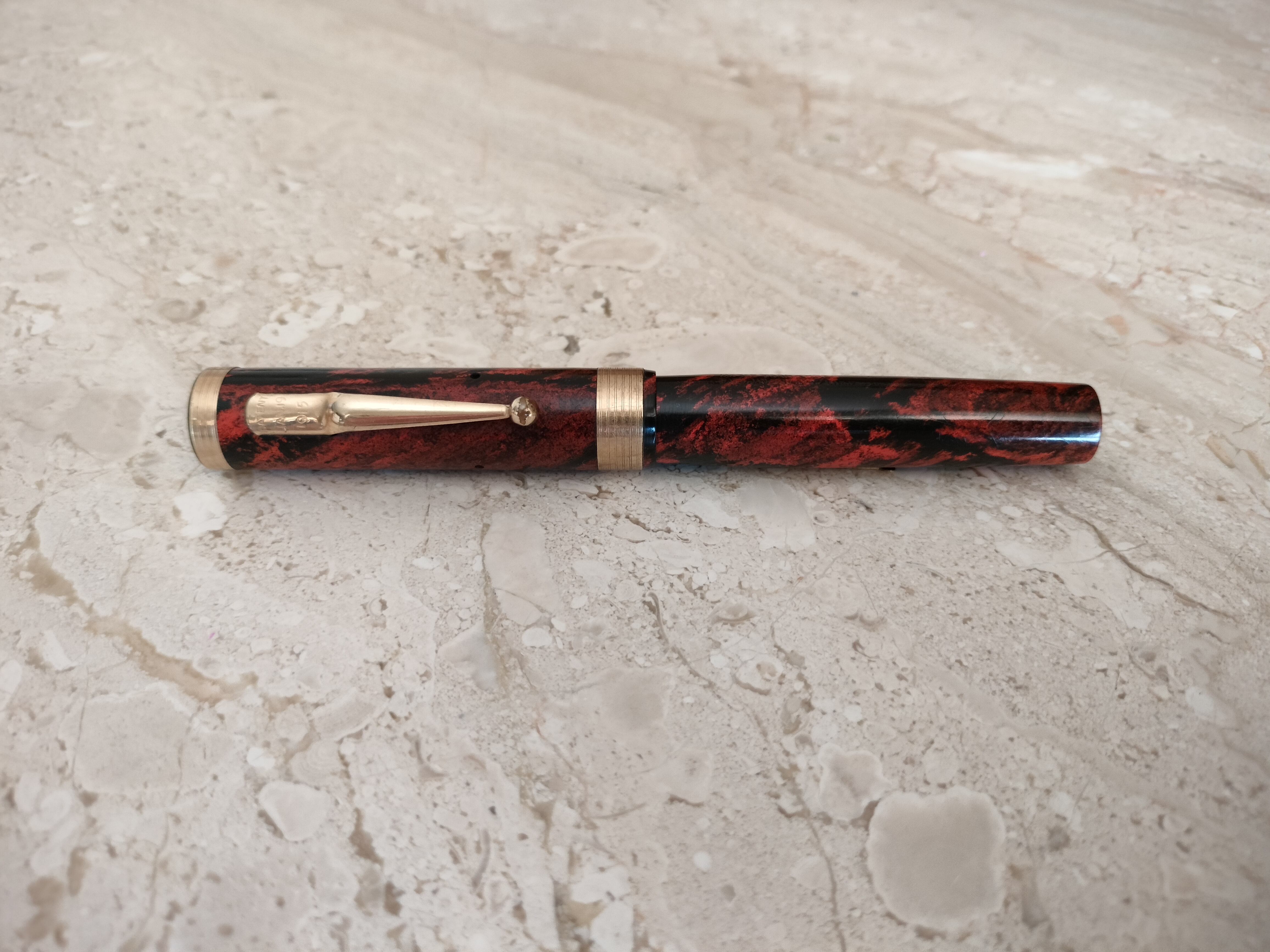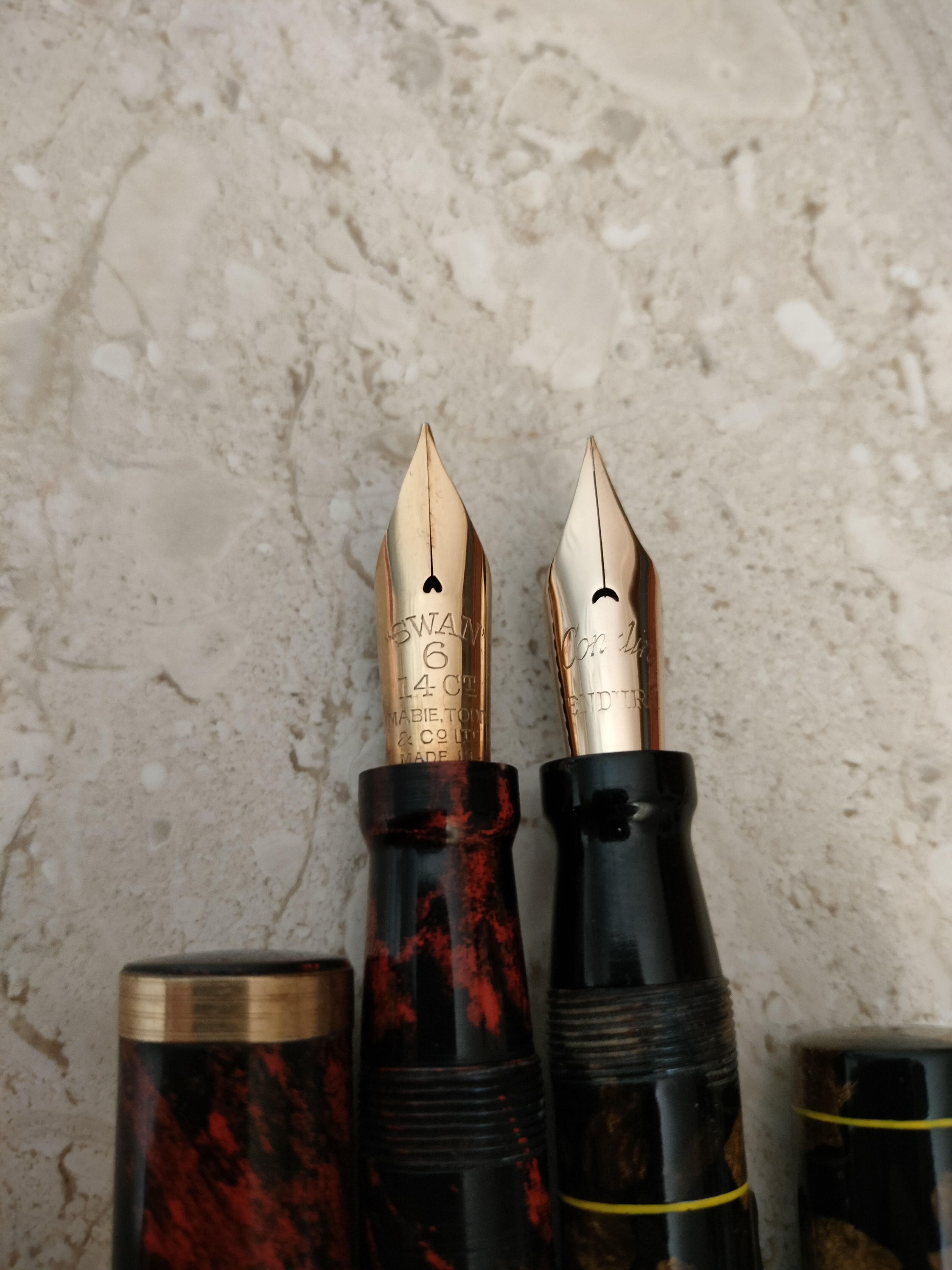 condivido alcune fotografie della mia Mabie Todd Swan Eternal con pennino #6 flessibile, in ebanite rossa "mottled".