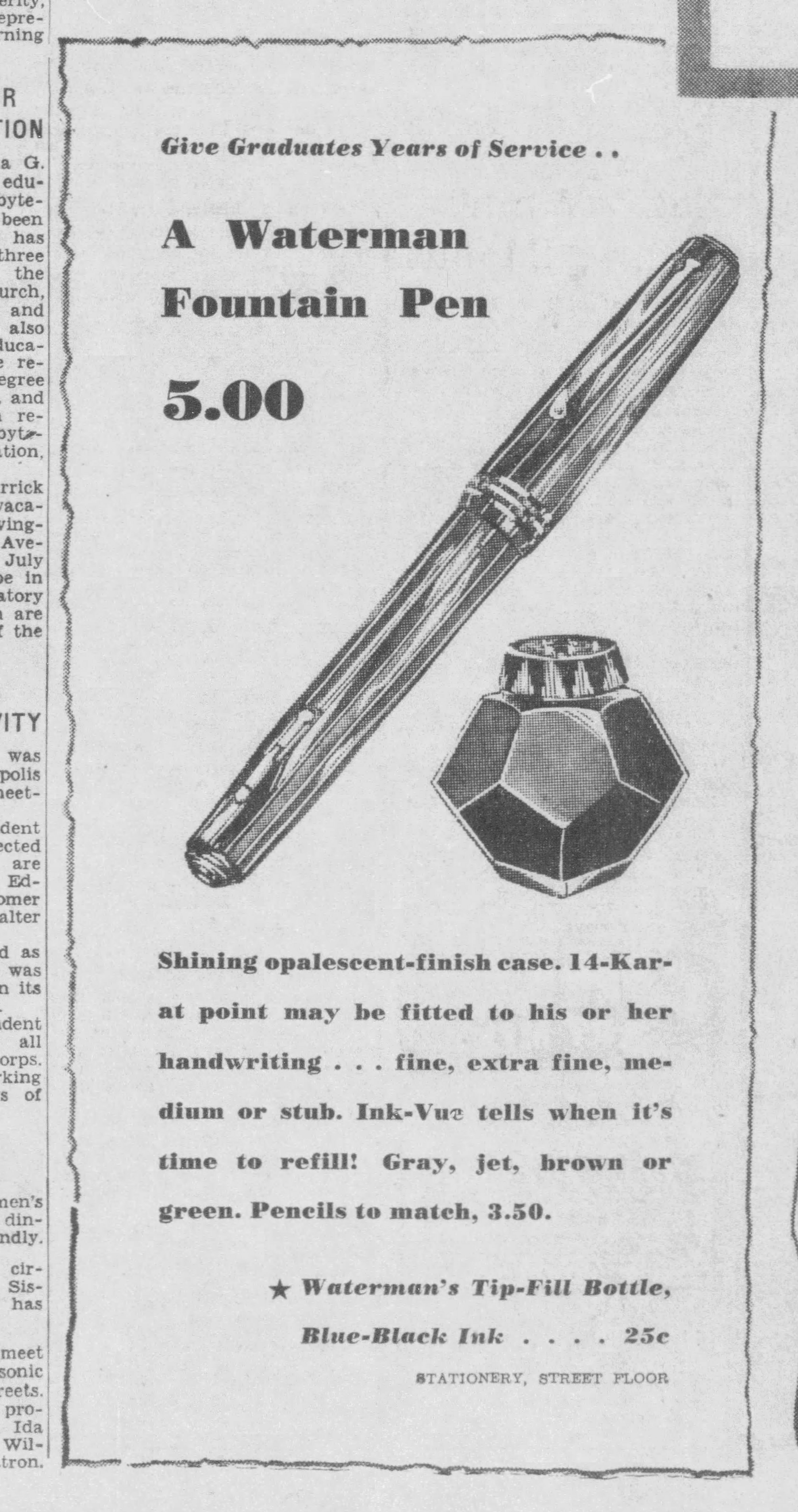 Lo stato dell’arte dei calamai Waterman’s negli USA nell’anno 1936