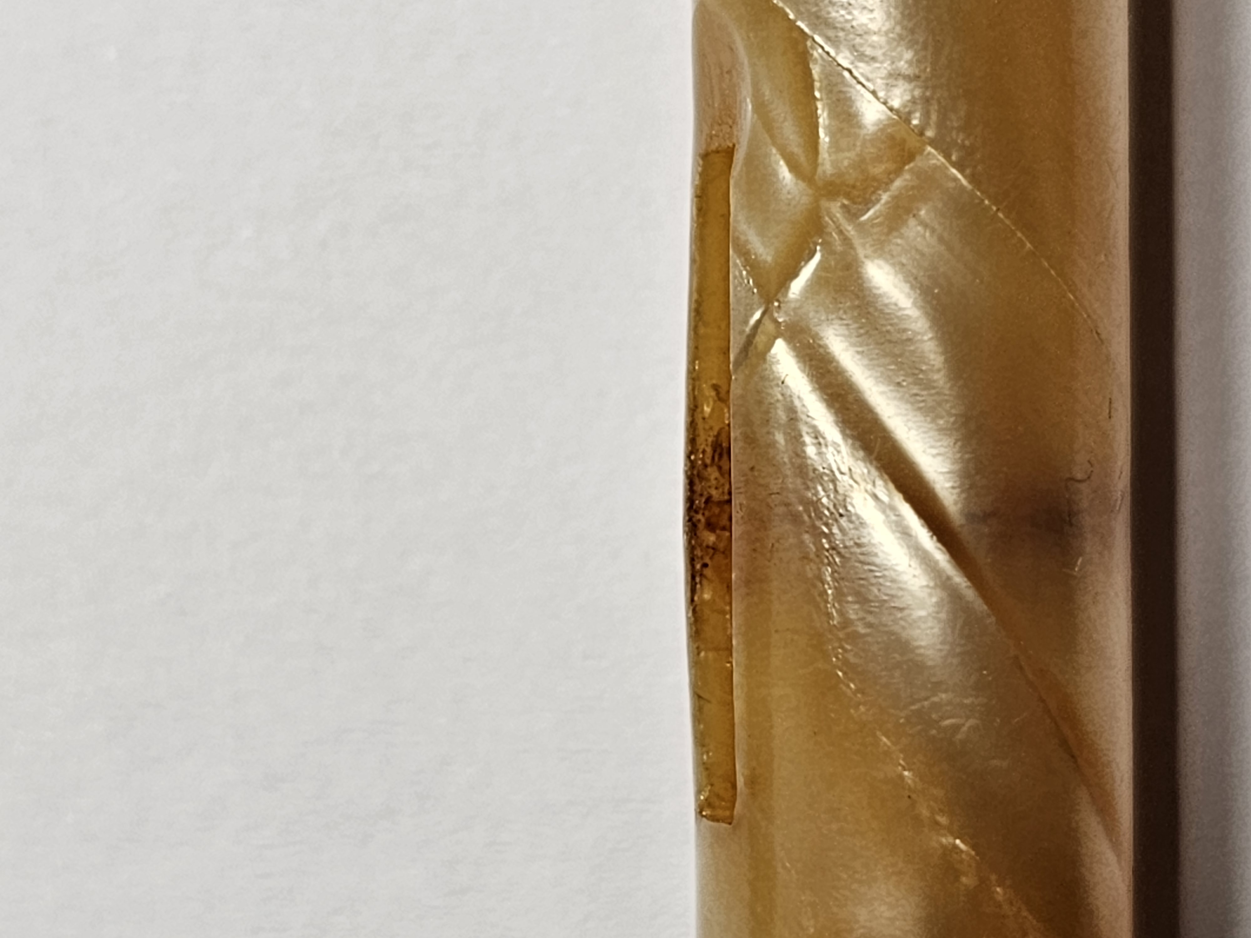La sezione presente 2 graffi abbastanza profondi ed un danno che sembra essere provocato da corrosione del materiale.