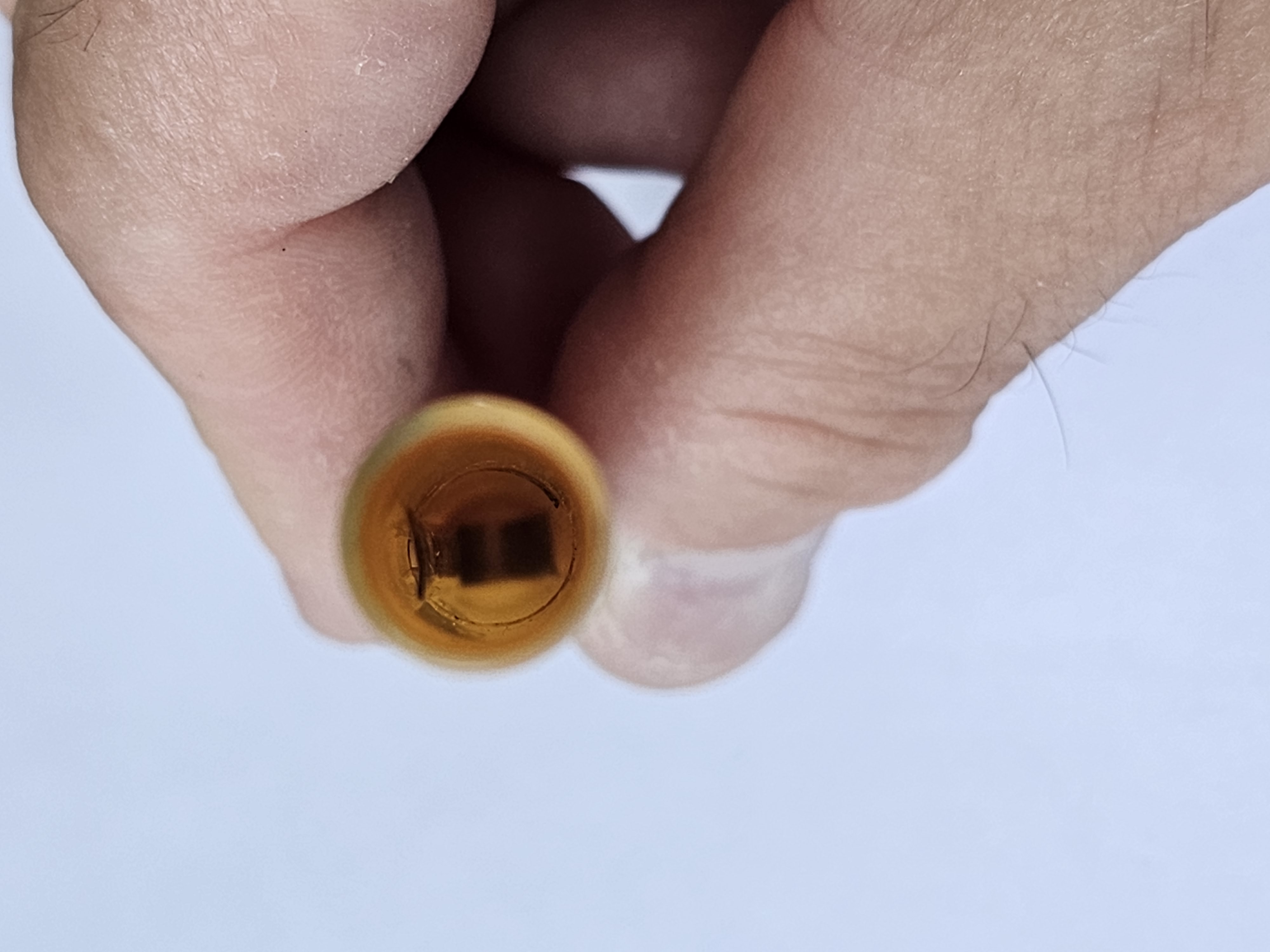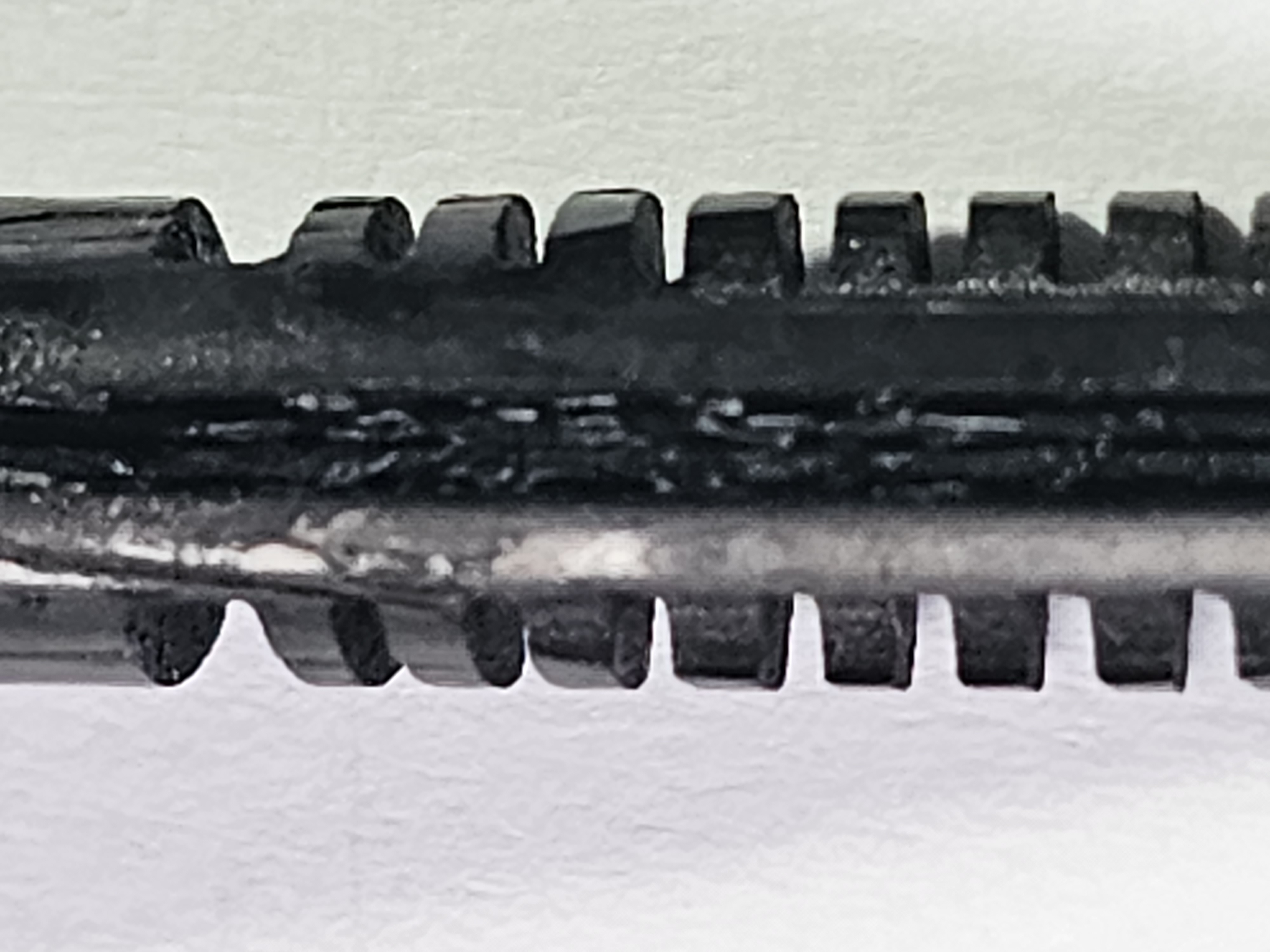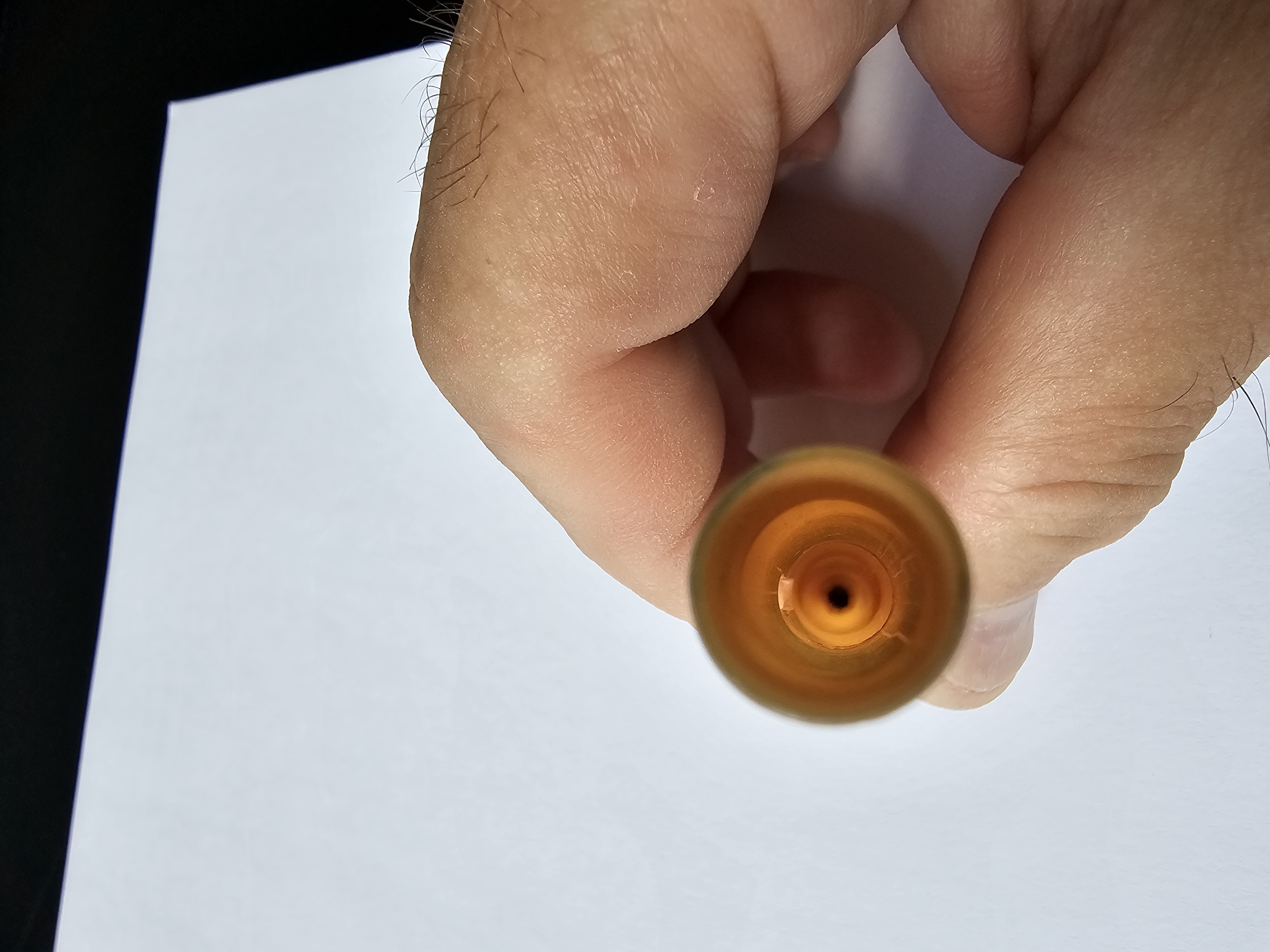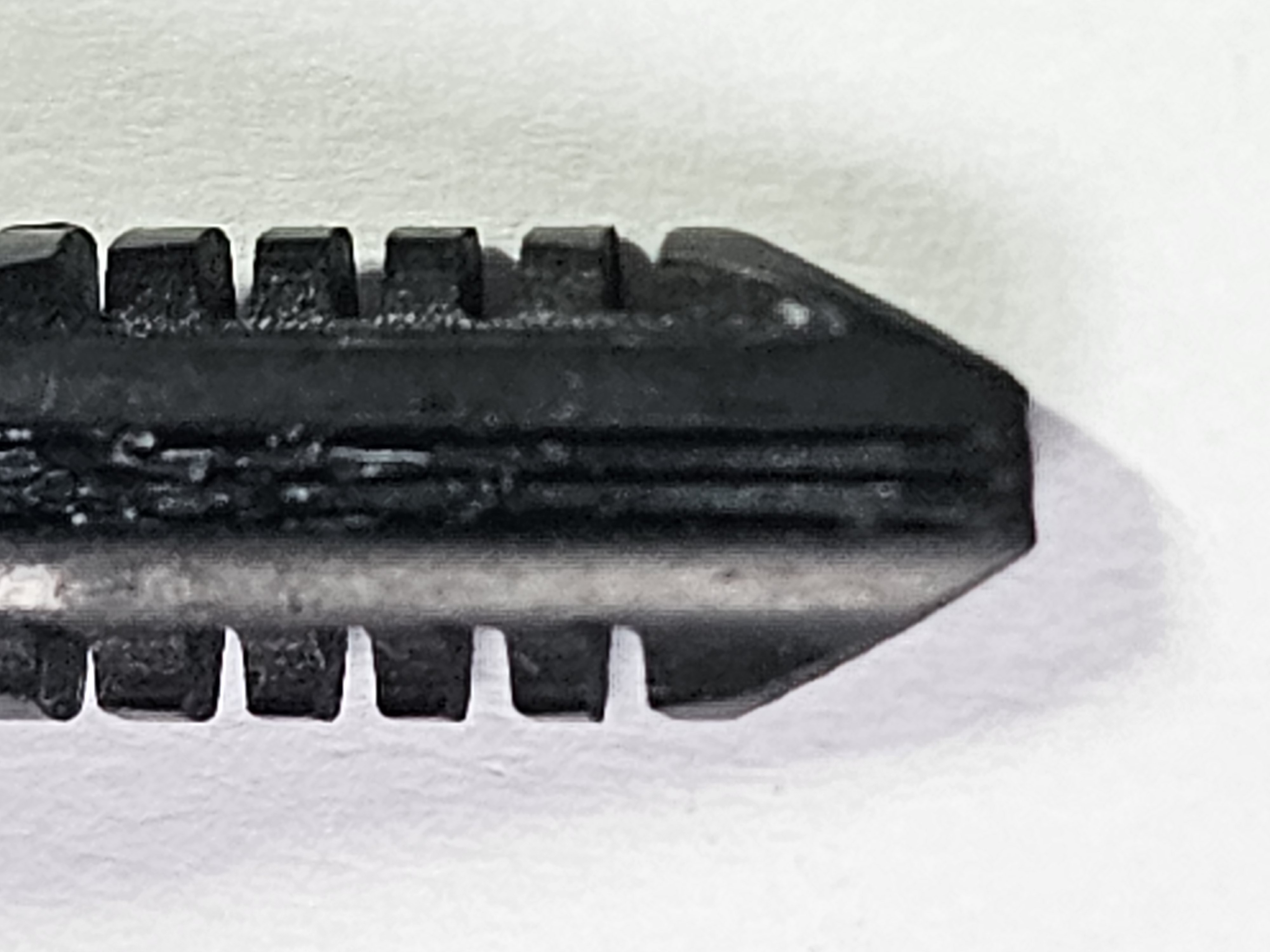 Da notare la deformazione del fusto nel punto in cui la molla ad anello esercita pressione