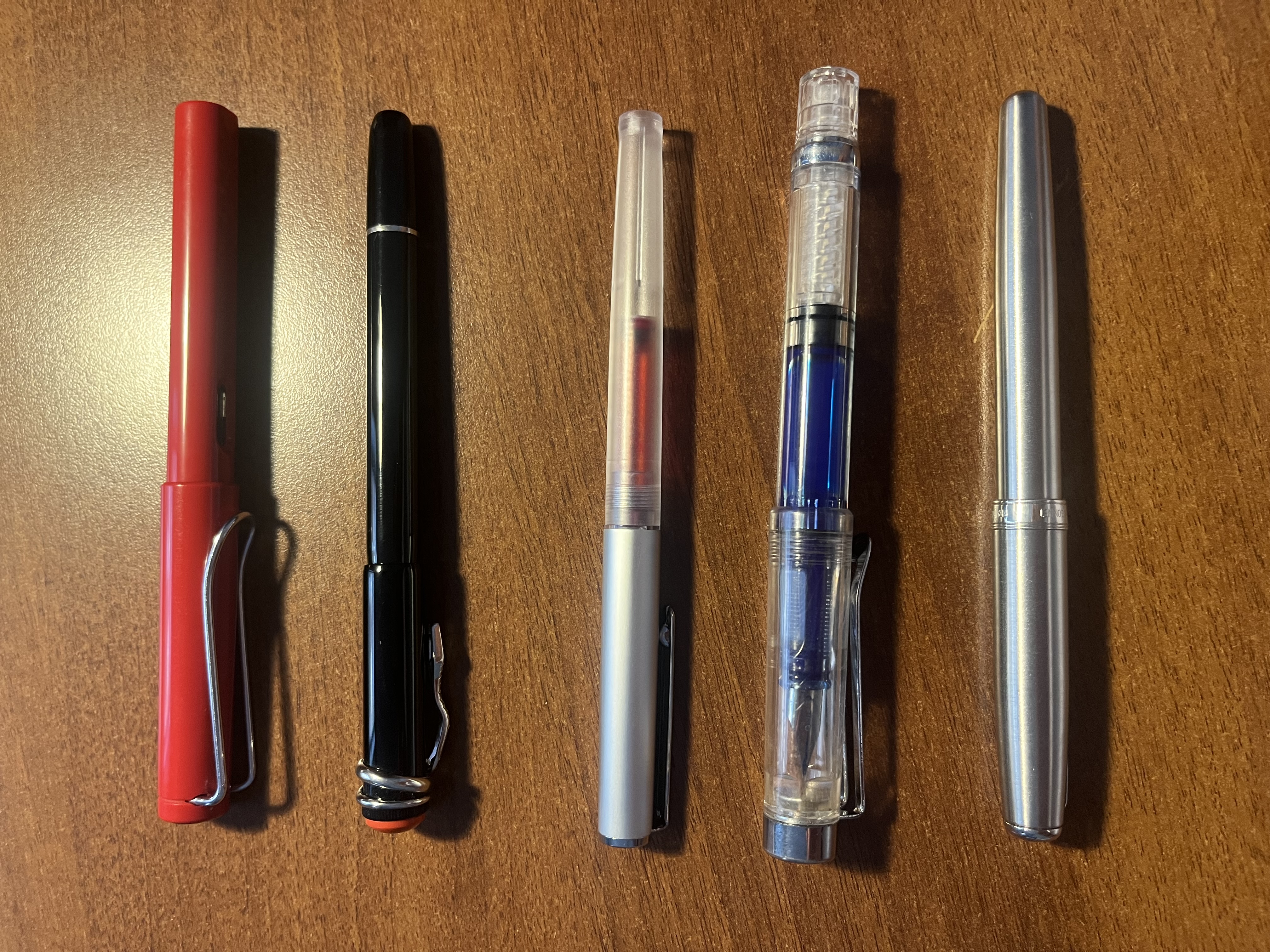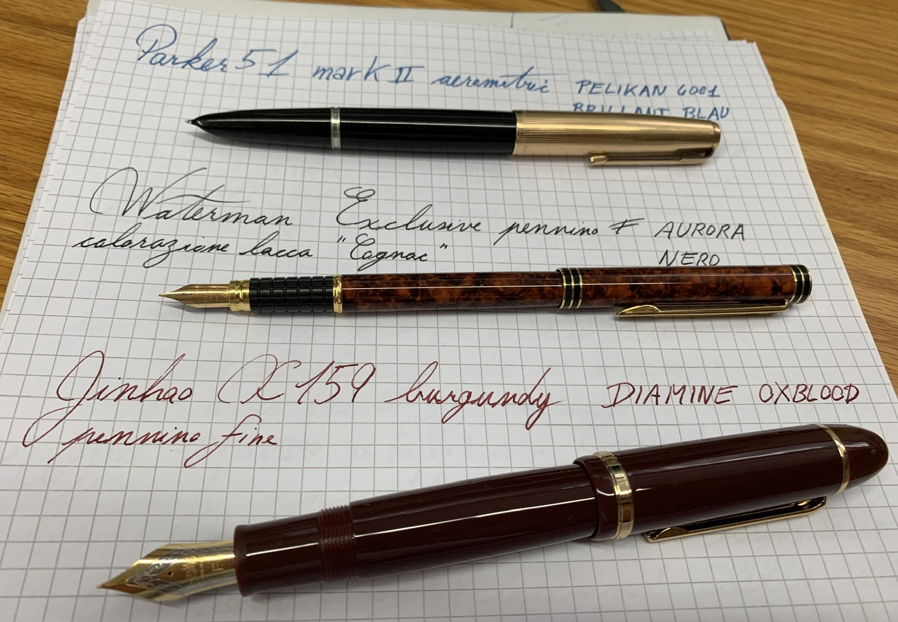 Ormai mi sono fatto persuaso di tenere costantemente inchiostrate solo stilografiche orientali; un paio di Pilot, un paio di Jinhao , un paio di Moonman e una PENBBS .  Per non perdere contatto con le origini anche una Aurora 2-cart e una Parker 45 custom .