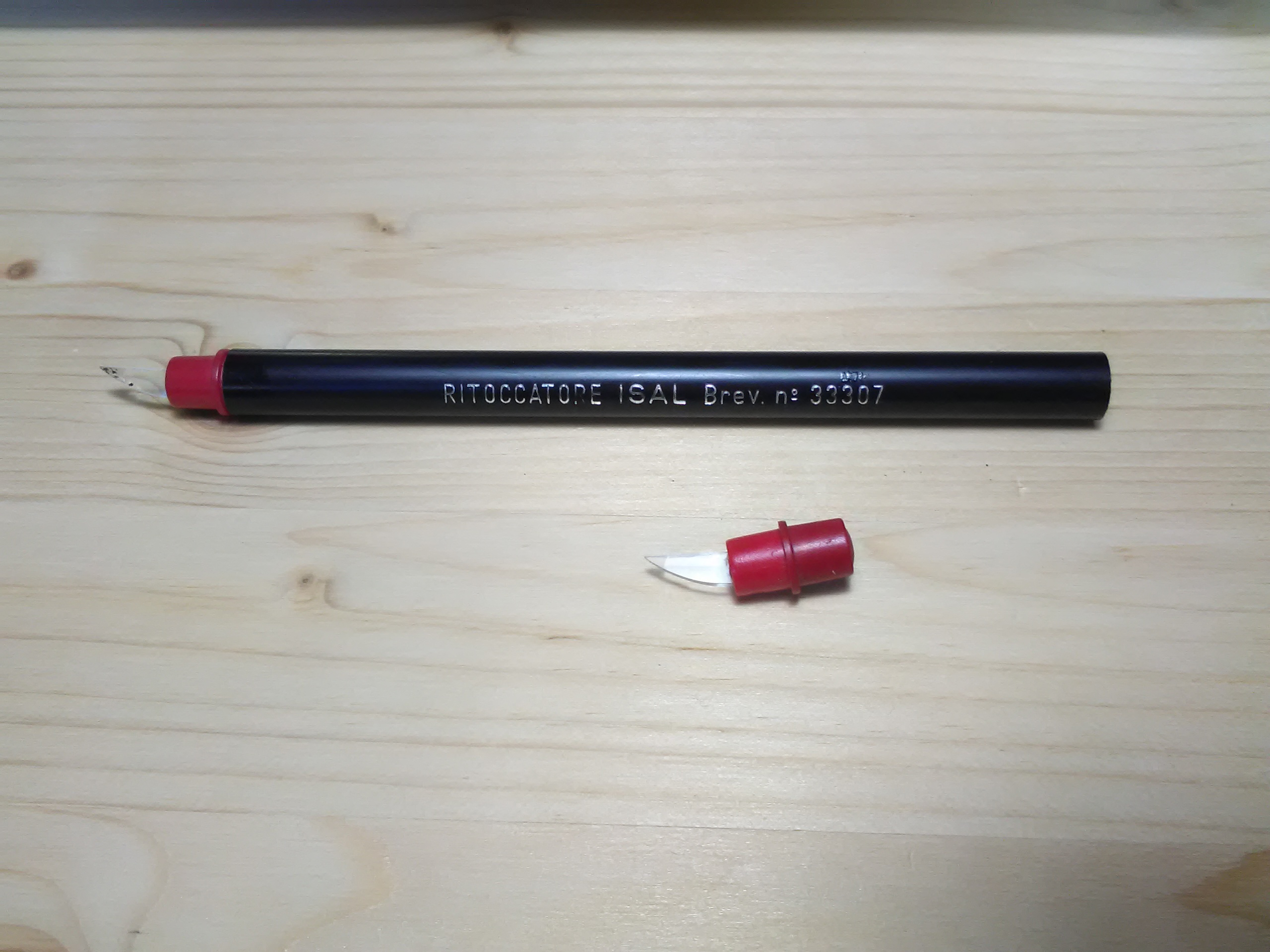 Tra le cose salvate dallo scippo c'è questo cancellino in fibre di vetro retraibili (esaurite). Ottimo su lucidi e radex, ma tossico!