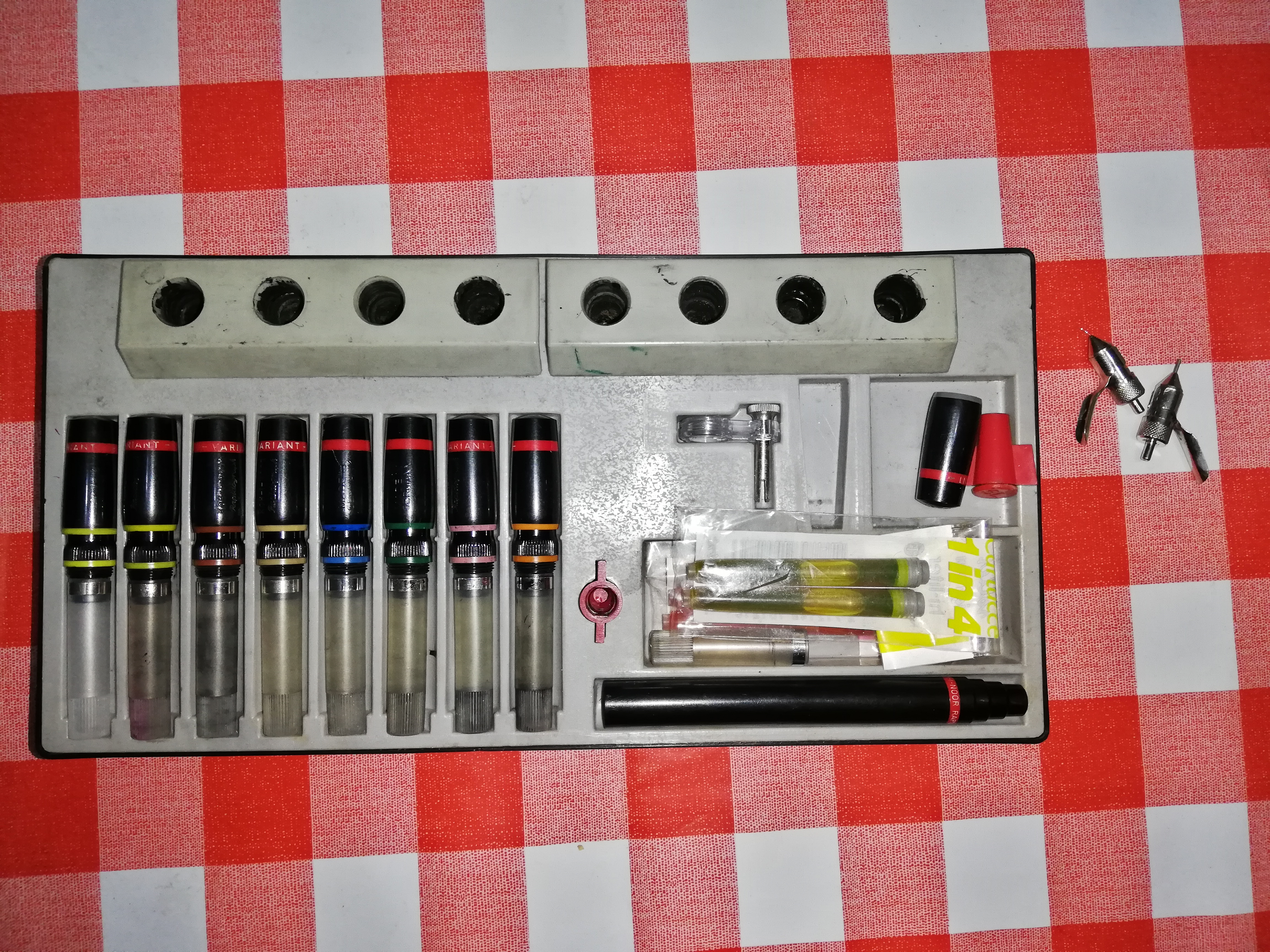 eh, sì, quando facevo disegno tecnico non sopportavo l'idea di doverli svitare per mettere sul singolo fusto per usare una punta diversa (né ho mai apprezzato molto l'idea di calzare due puntali sullo stesso fusto, trovavo il bilanciamento non comodo per me) per cui alla fine ho preso più fusti diversi (ne ho anche qualcun'altro... ma rotti... avevano una dannata tendenza a creparsi... anzi adesso con tutti i suggerimenti che circolano proverò a vedere come incollarne qualcuno)