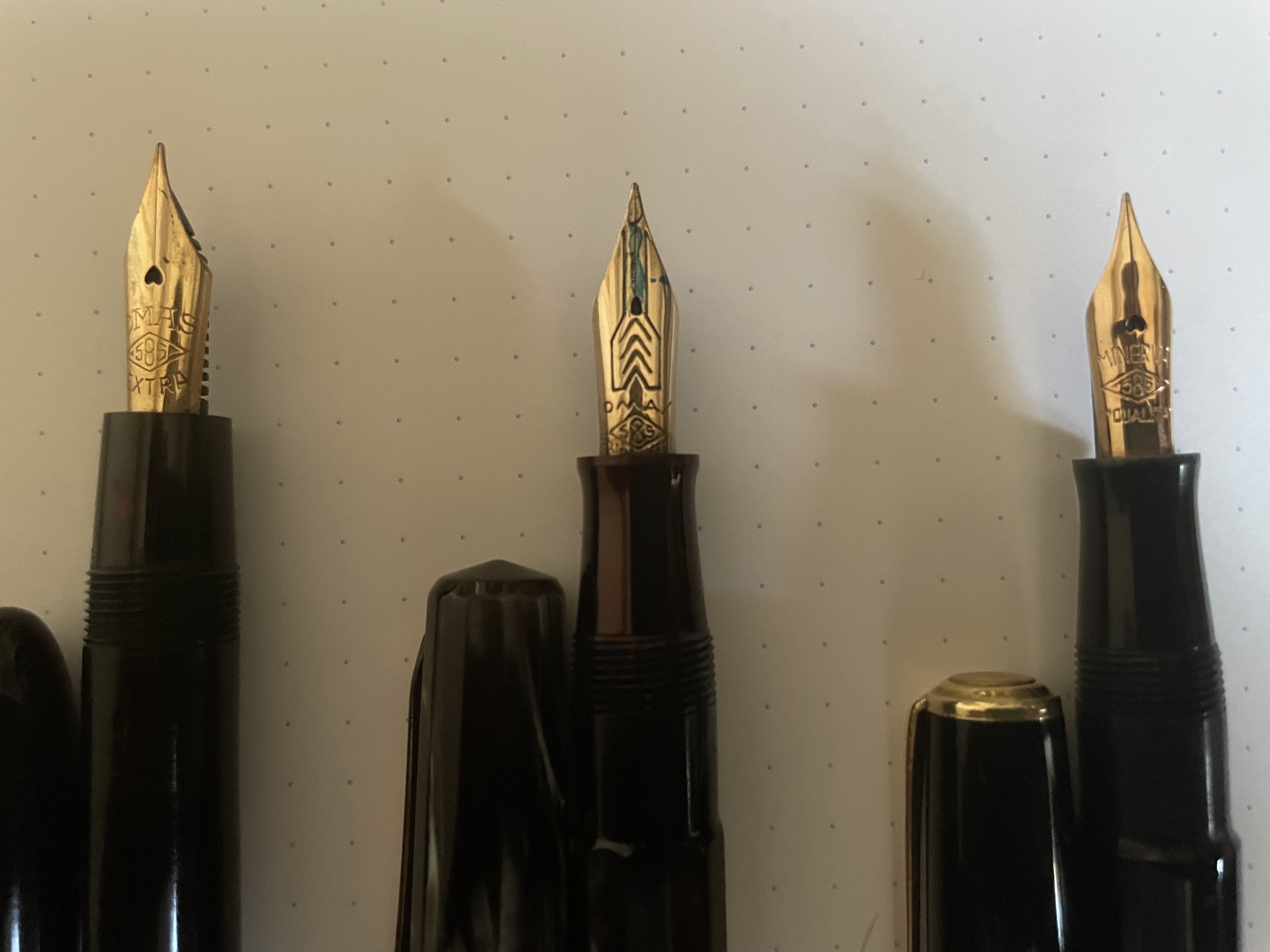 La metto qui a confronto di due sue “gemelle diverse” che uso molto spesso: un’Omas Milord con pennino extra Lucens e una Minerva Classica, tutte EF.