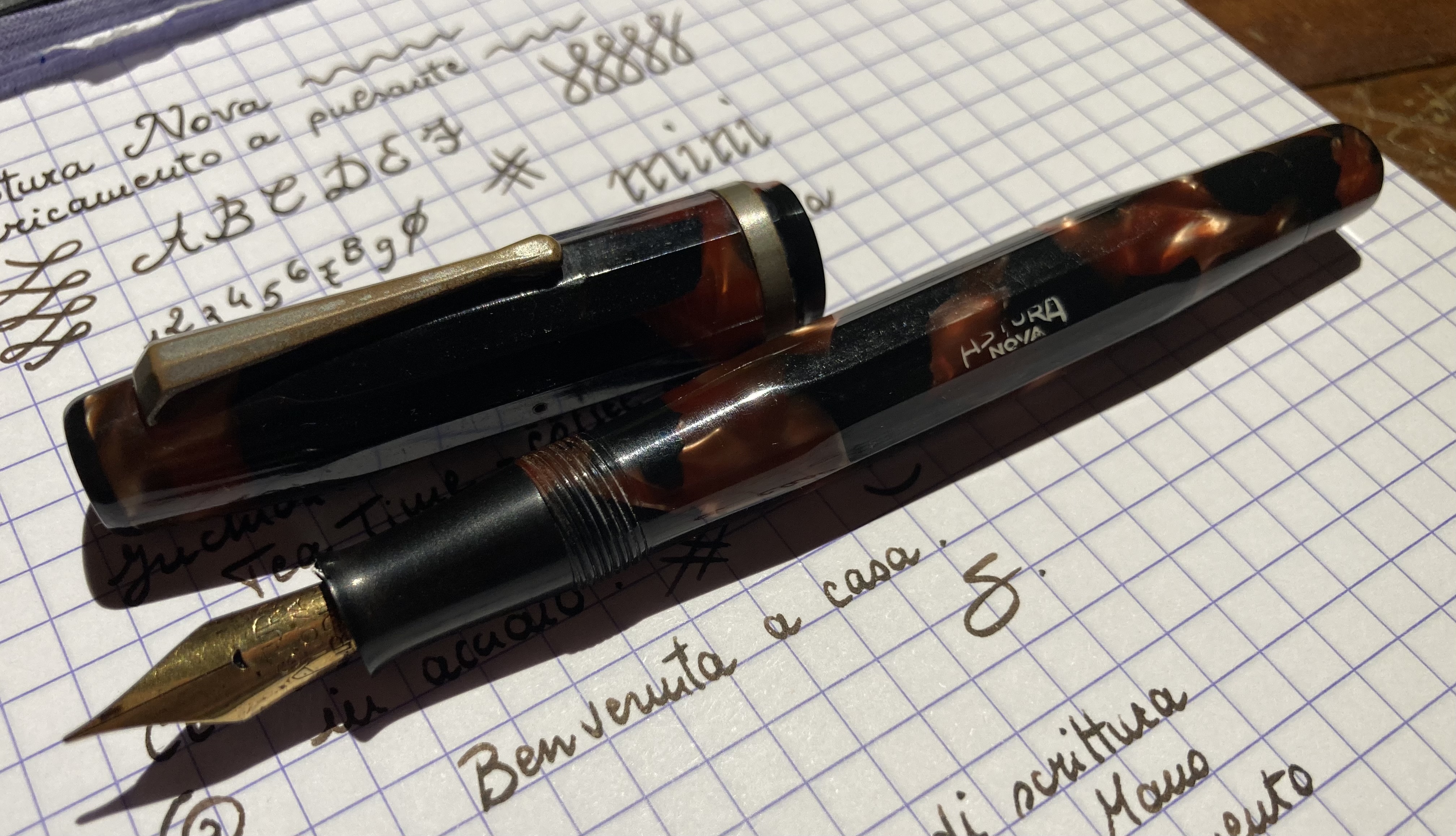 L’ho provata e funziona bene: il pennino è un flex d’acciaio che, pur stando leggera leggera di mano, è sempre piuttosto generoso. Proverò cambiando inchiostro per vedere se ottengo una scrittura con più variazioni di tratto. Qualche foto, per condividere!