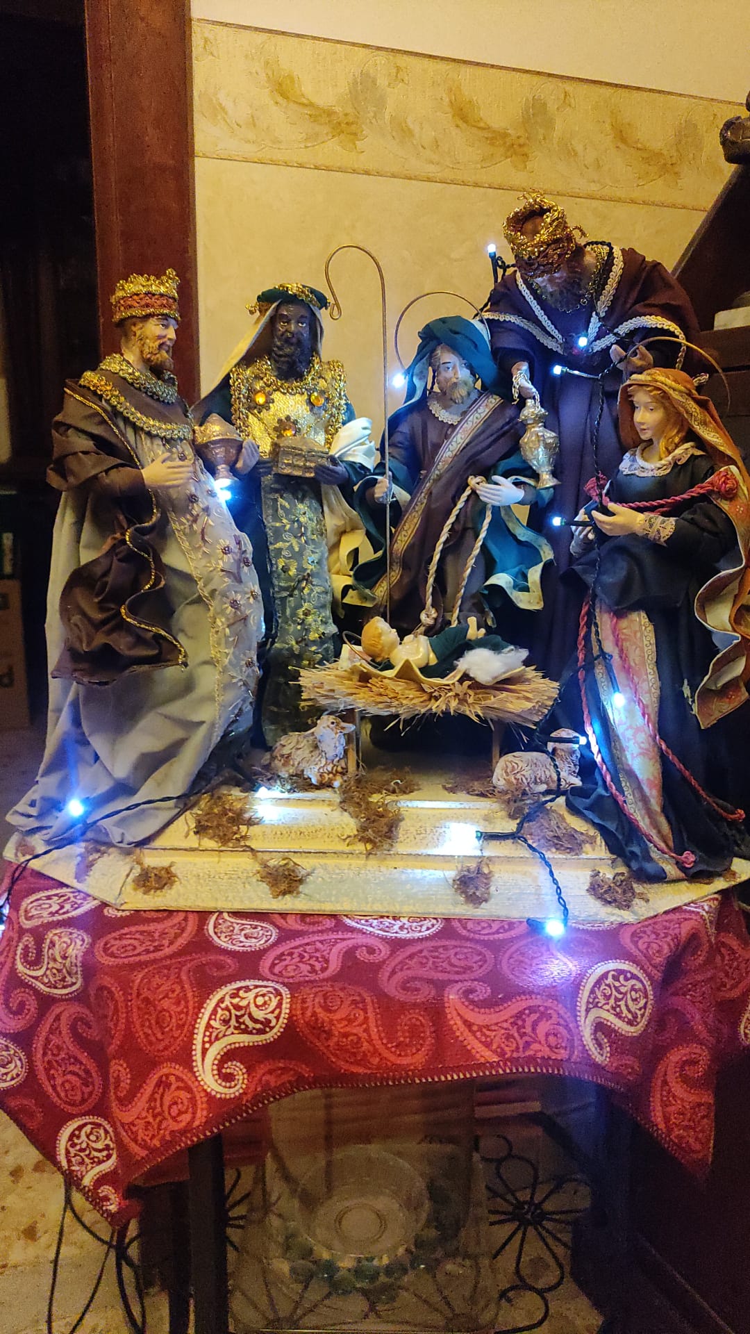Non rinuncio alle rappresentazioni della natività, in misura più essenziale, che sparse per casa acconpagnano le mie festività: