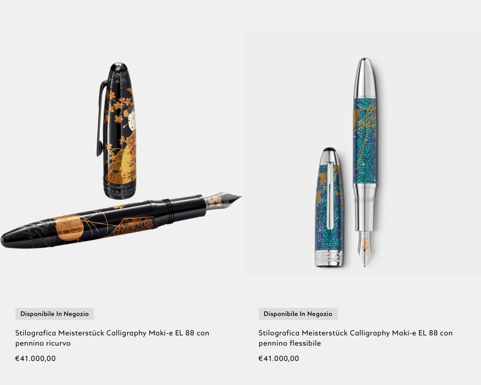 Riguardo queste Montblanc, credo siano assolutamente fuori prezzo, e non di poco, ma loro sanno SE le vogliono vendere. la vedo comunque come un’operazione per non essere da meno rispetto altri produttori europei che fanno le versioni delle loro top di gamma (m800-m1000) con tecniche maki-e o raden, della serie “se lo fanno gli altri lo faccio pure io, ma con i prezzi Montblanc”