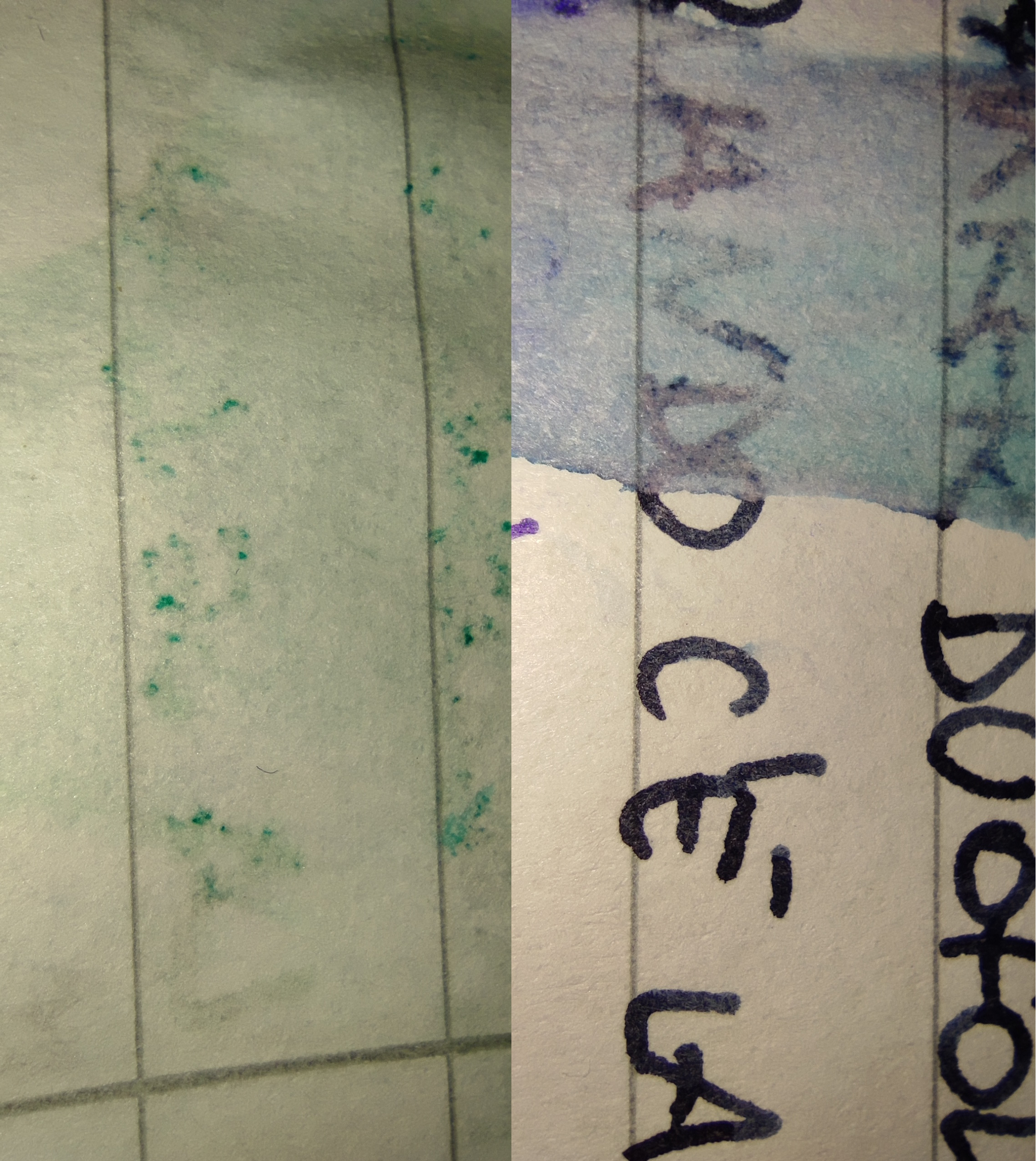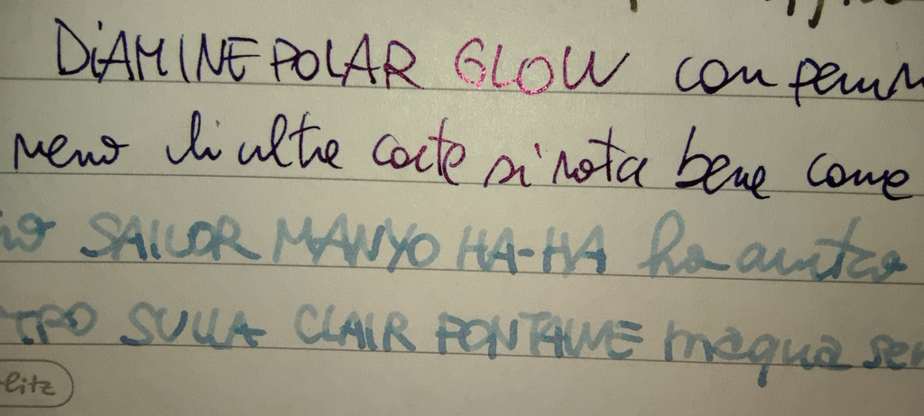 Gli inchiostri che hanno sheen e shading sono visibili , quelli con lo shading più di quanto lo fa sulla carta clairefontaine.