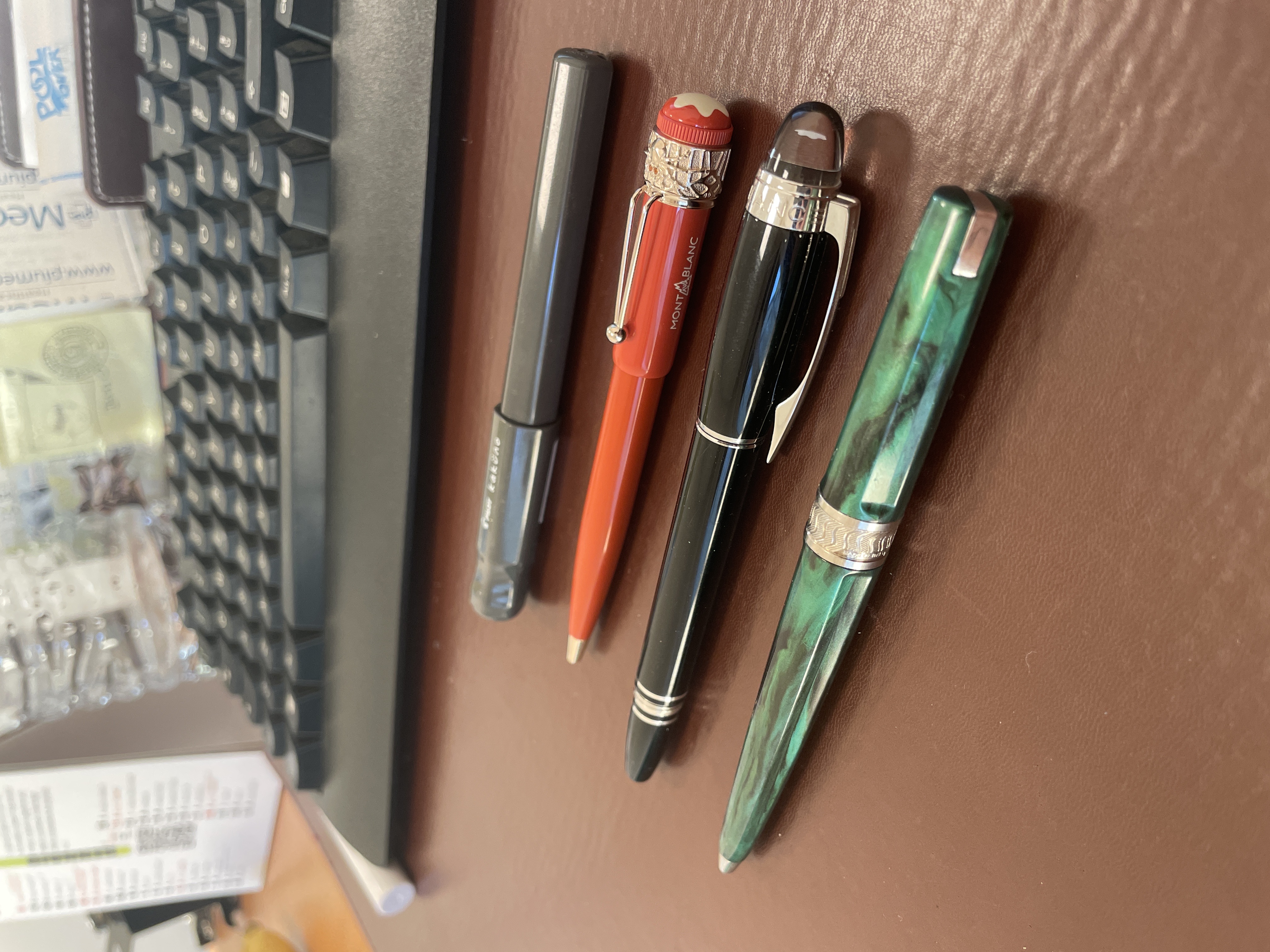 Una Visconti mirage , una montblac starwalker e una montblac heritage spider metamorphosis color corallo, ho visto che quest’ultima non è una penna che piace a tutti, ma io la trovo veramente bella