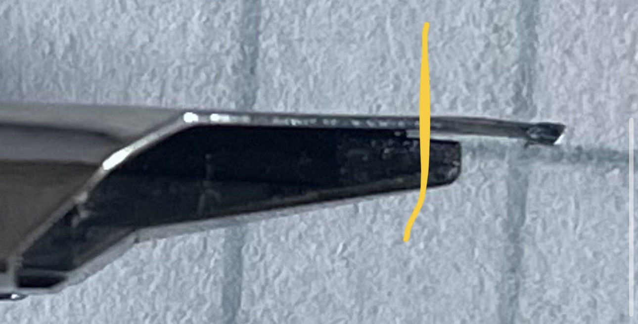 Tra l'altro dalla foto sembra anche che i due rebbi siano disallineati.