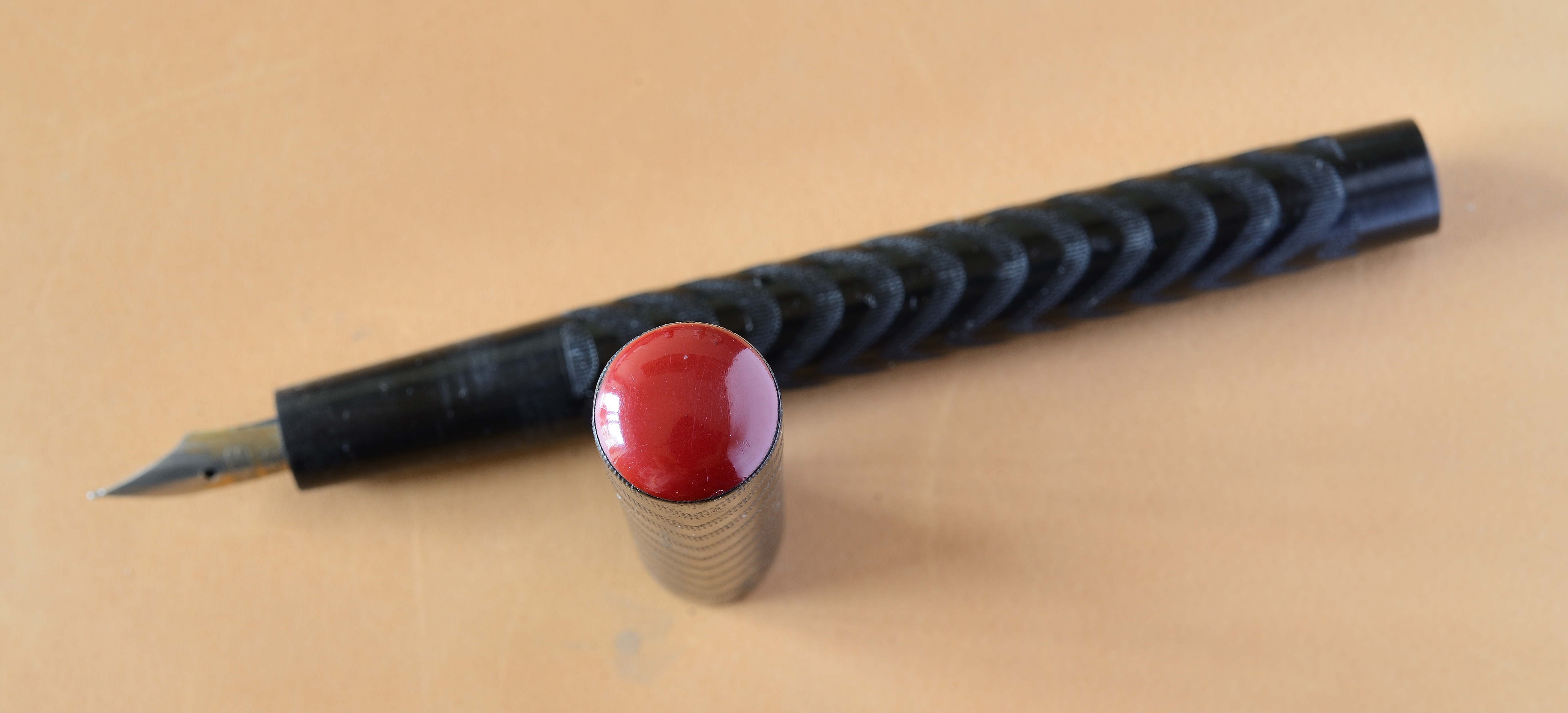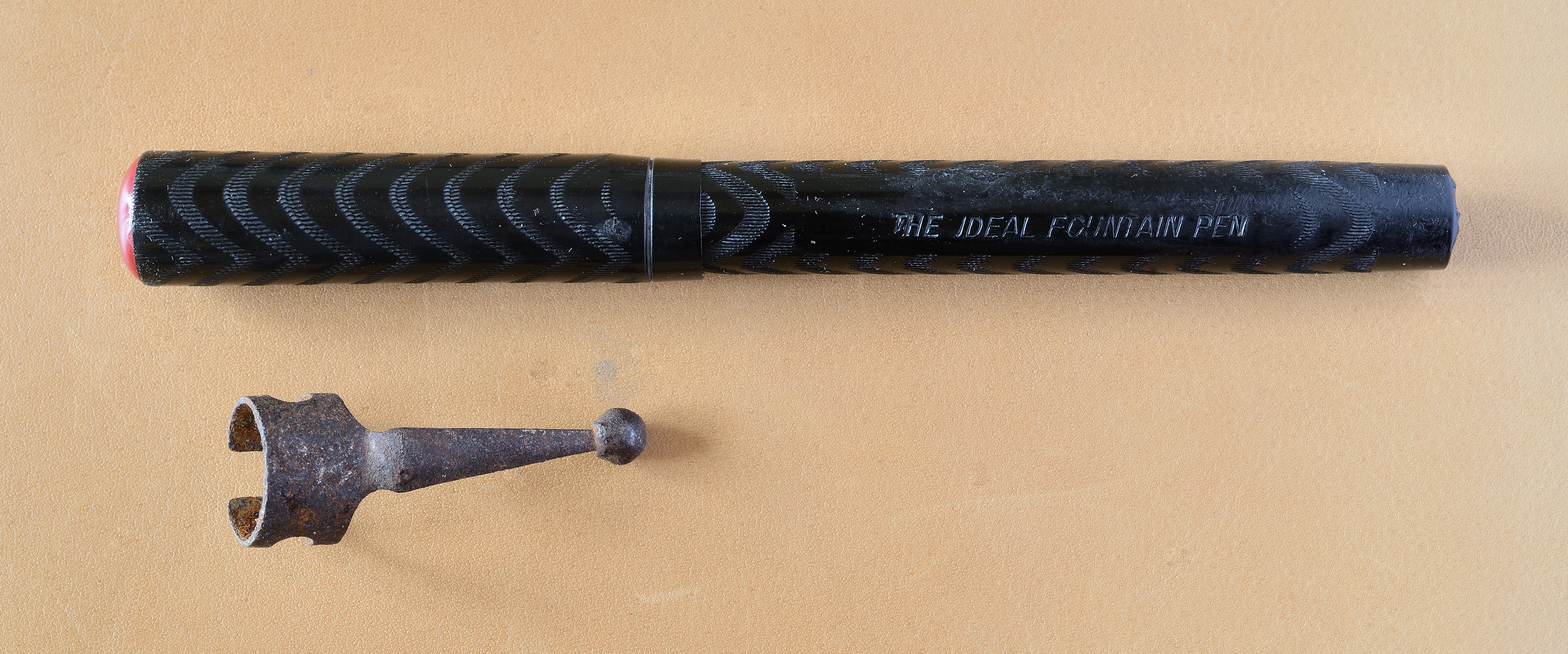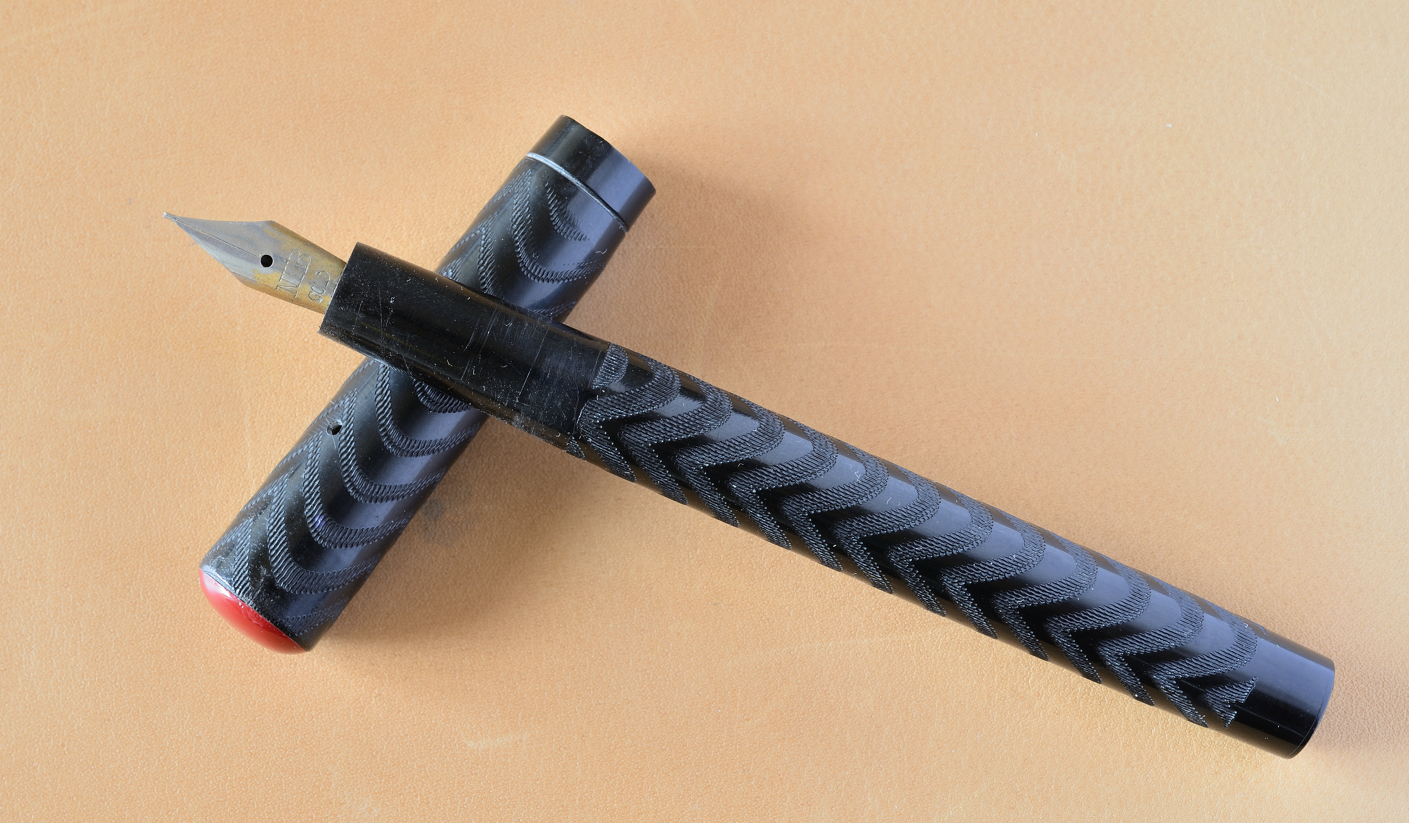 Piccolo ritrovamento fortuito per questa penna in ebanite incisa, marcata al fusto