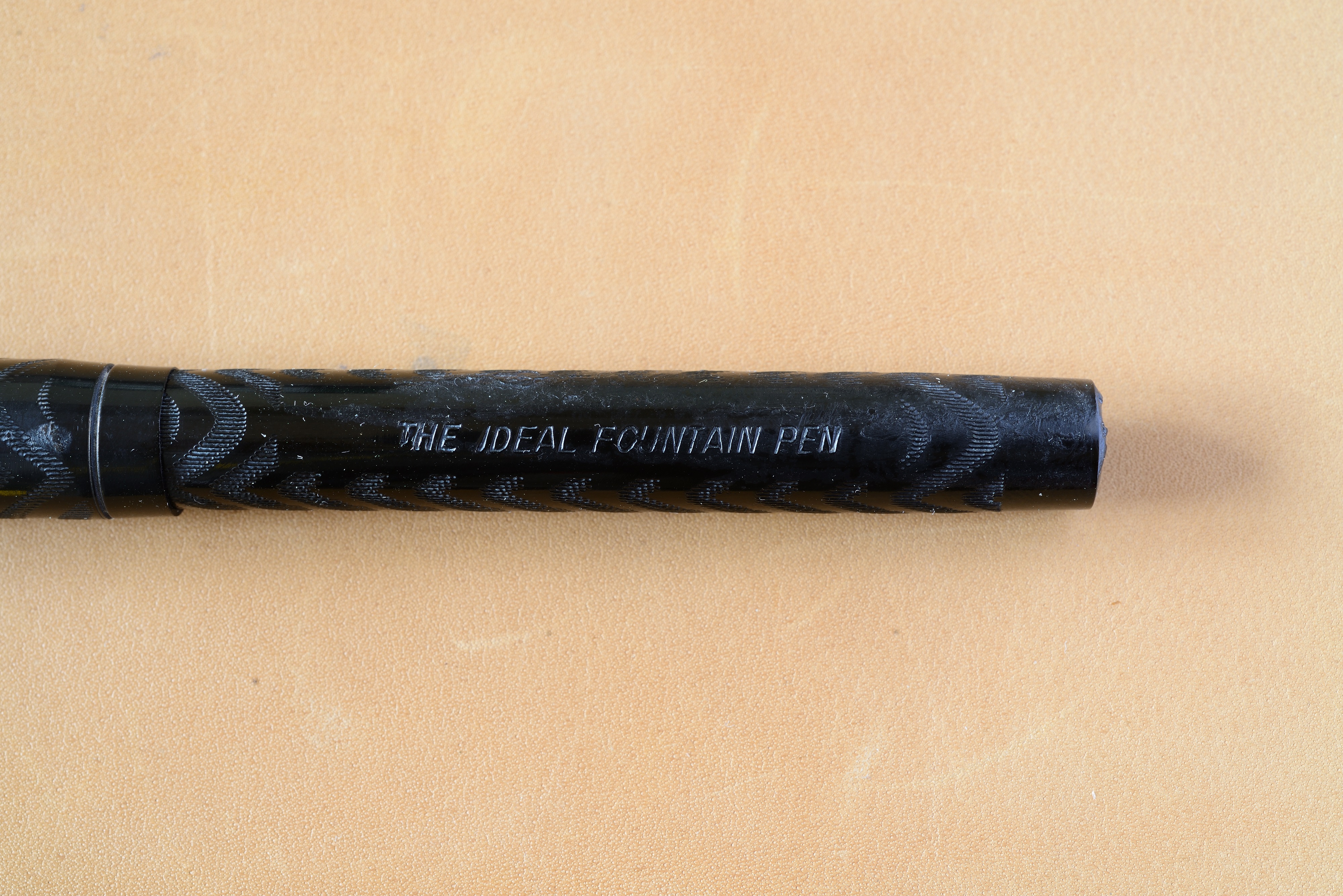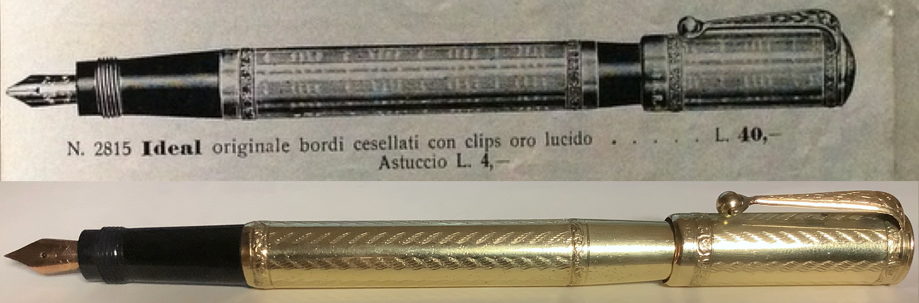 Ideal è un marchio che si trova su vari cataloghi, in particolare quello di Cesare Marinai, che era un'argentiere, e quello di Olivieri che era anche un produttore di penne. Non è chiaro chi la producesse, ma essendo presente su un catalogo Olivieri, ed essendo questo un produttore ... potrebbe essere lui, ma almeno per le laminate su alcuni esemplari è stato ritrovato il punzone dei Fratelli Cavaliere, cosa che rende la cosa ancora più confusa...