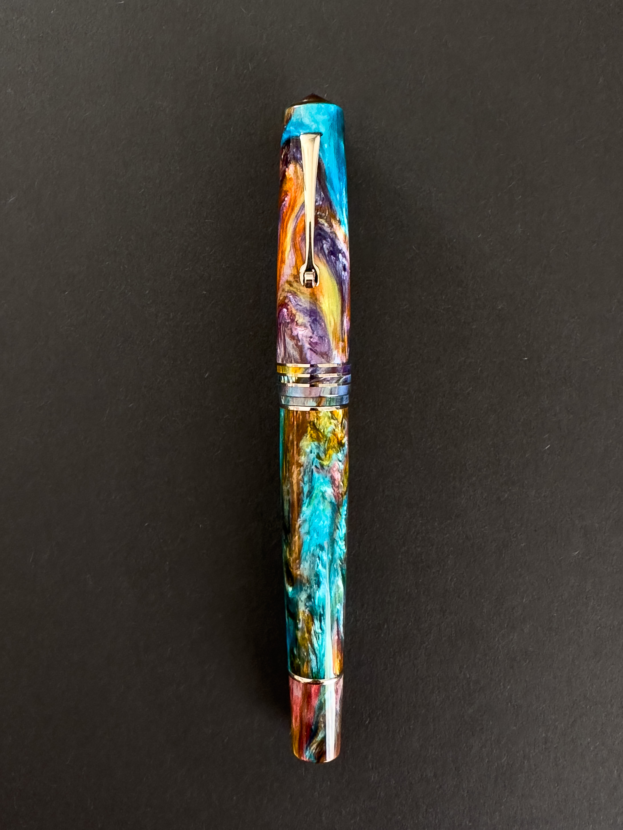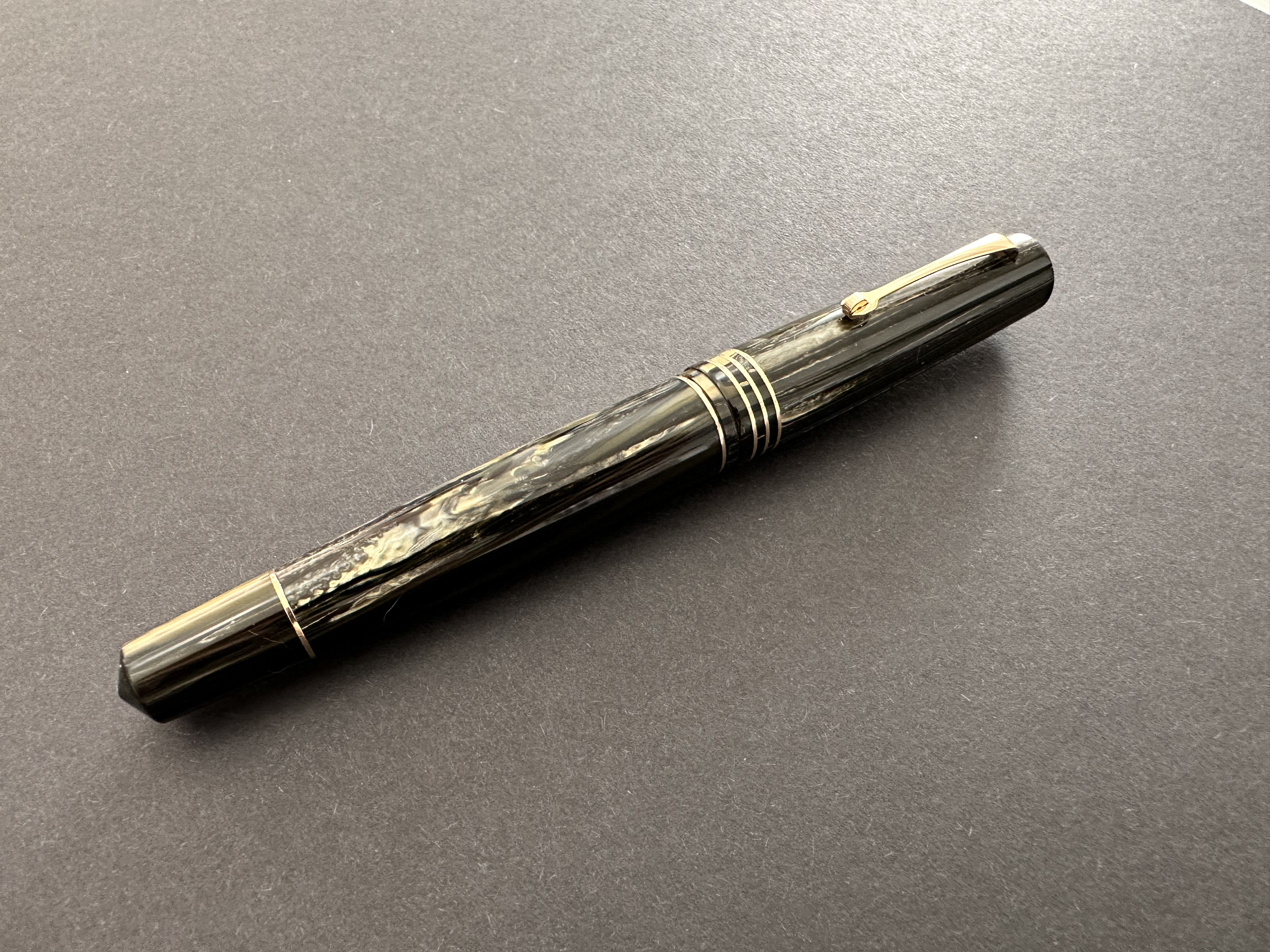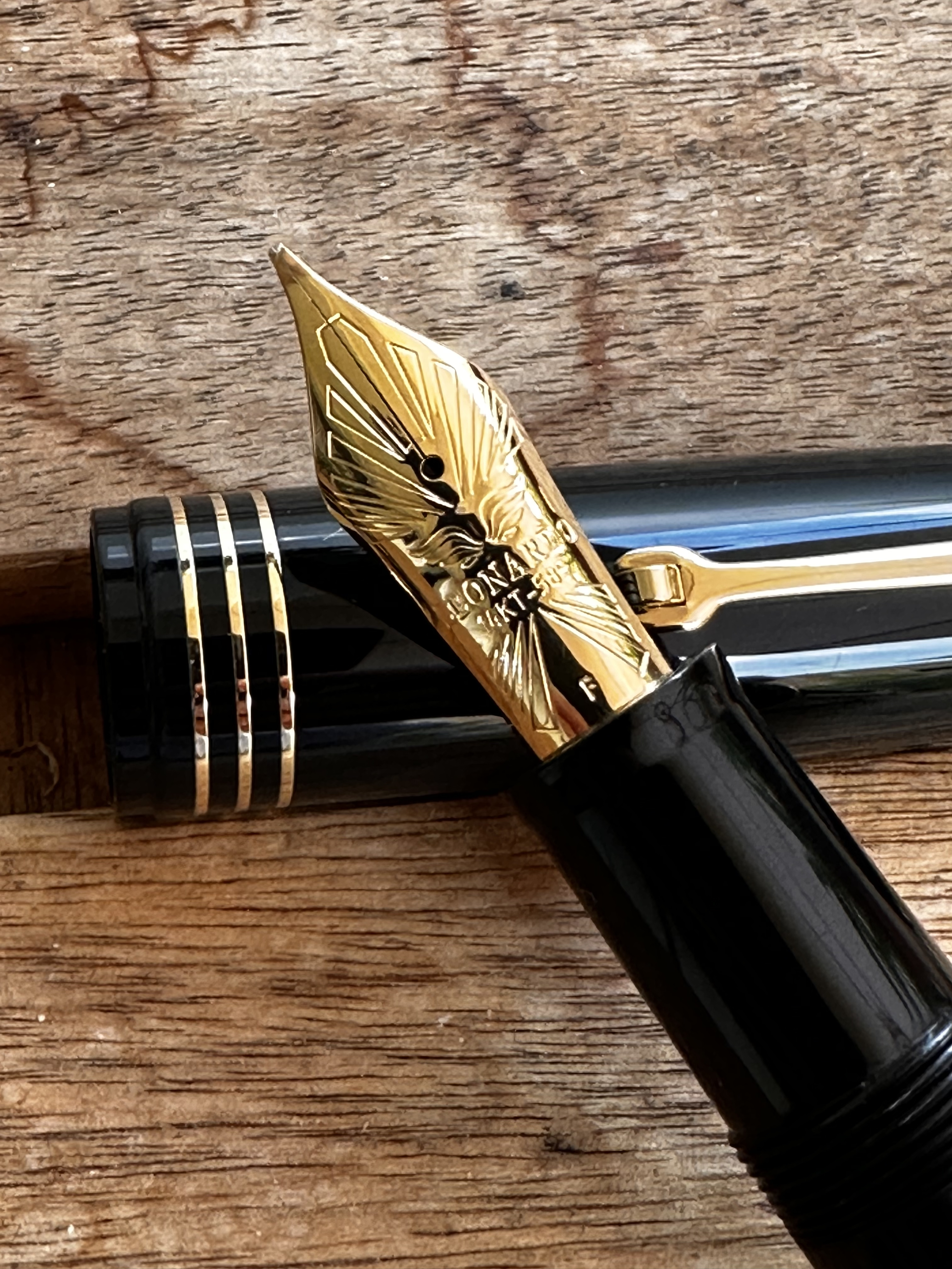 francoiacc ha scritto: lunedì 15 aprile 2024, 22:52 ... - Gioiellino in celluloide Mazzucchelli, ricarica a levetta laterale e pennino 14k