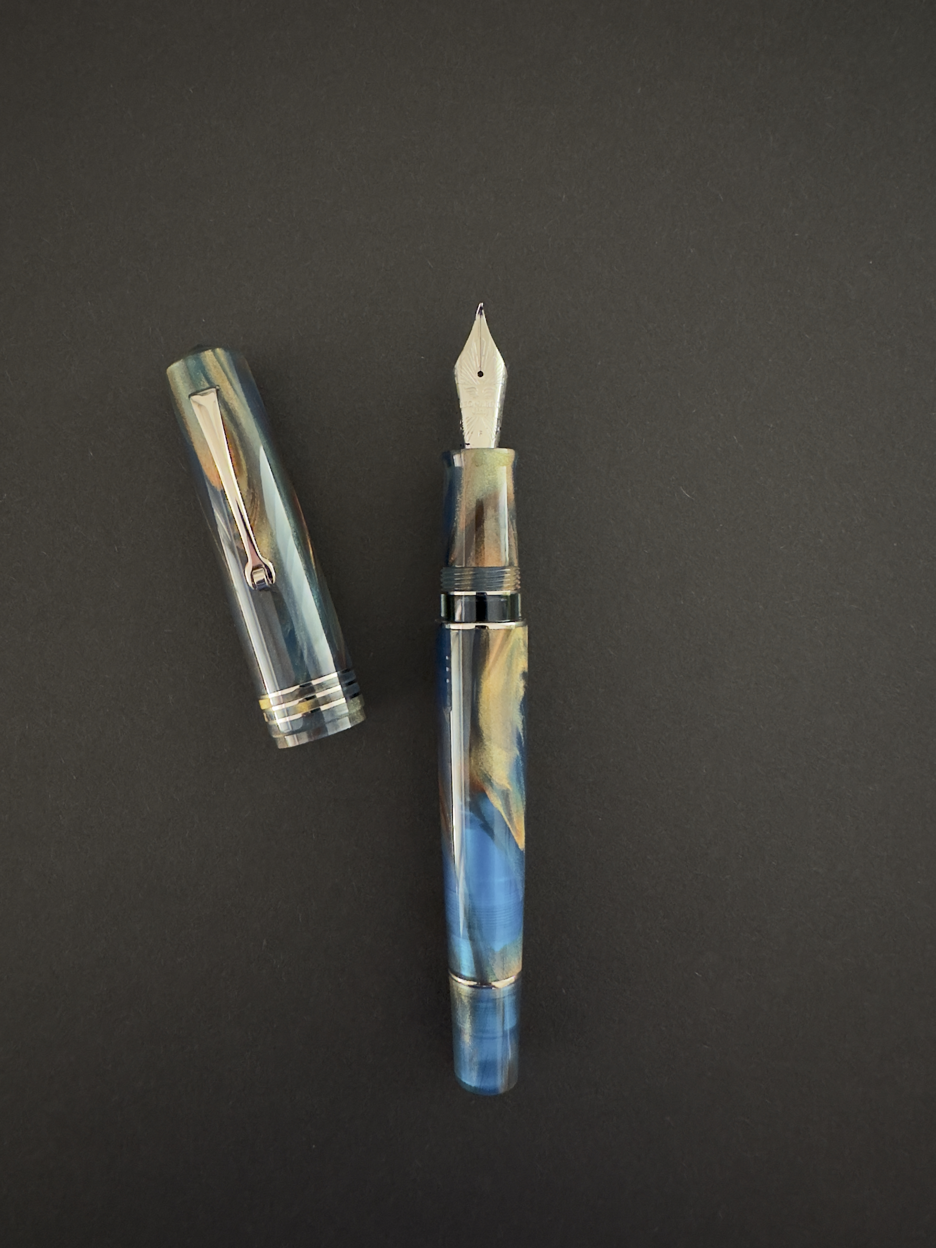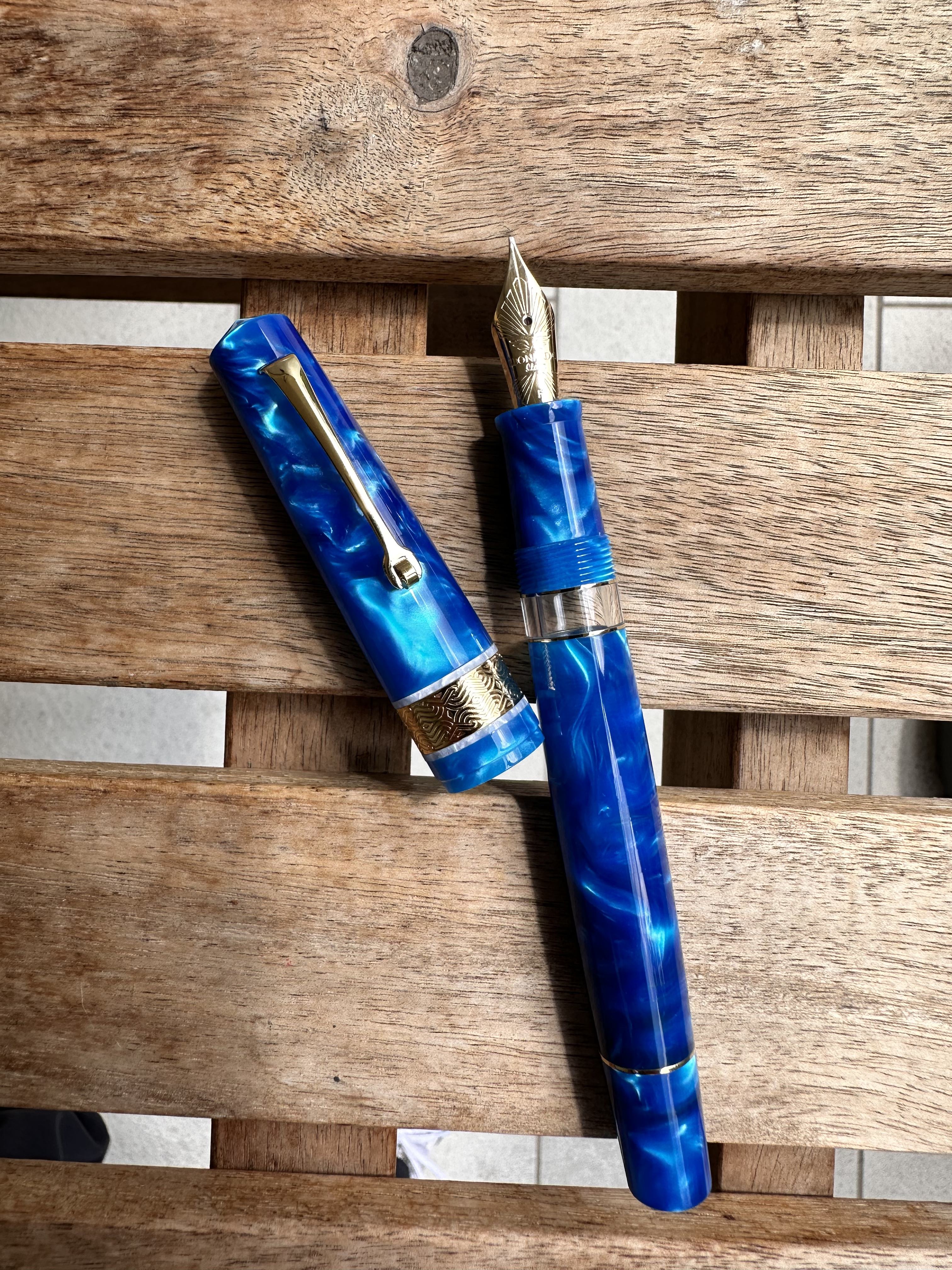 Qui andiamo di Momento Blu (Momento Zero Grande 2.0 in edizione limitata per Corsani), con pennino fine in titanio blu