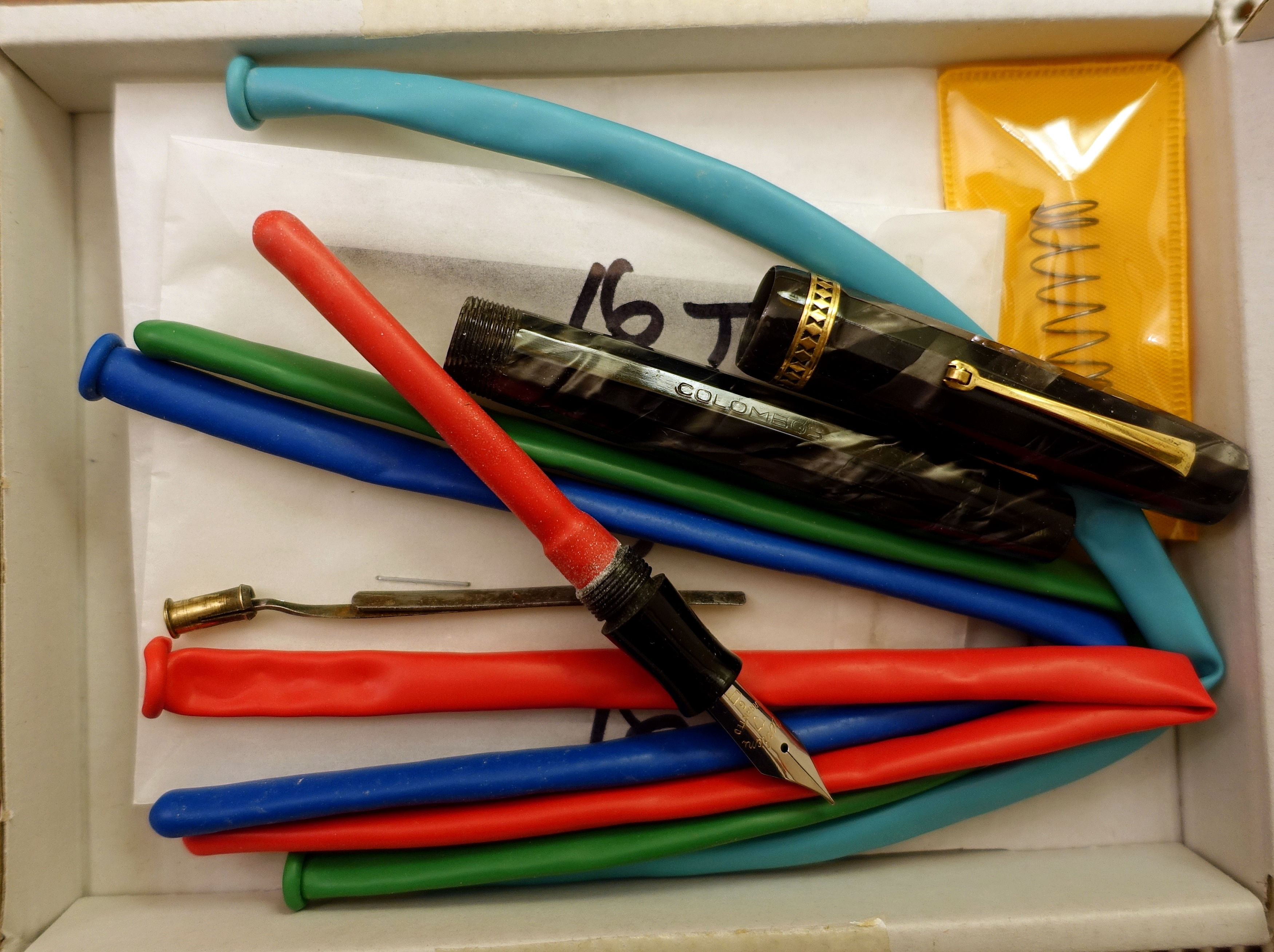 Lo so, qualcuno dira' che certe cose non si fanno ma non ho saputo resistere e ho provato un modo estemporaneo, ed efficiente, per dotare di sacchetto inchiostro una Penco 53 che sotto grumi di sporco interni ed esterni celava un bel cigno nero e oro.