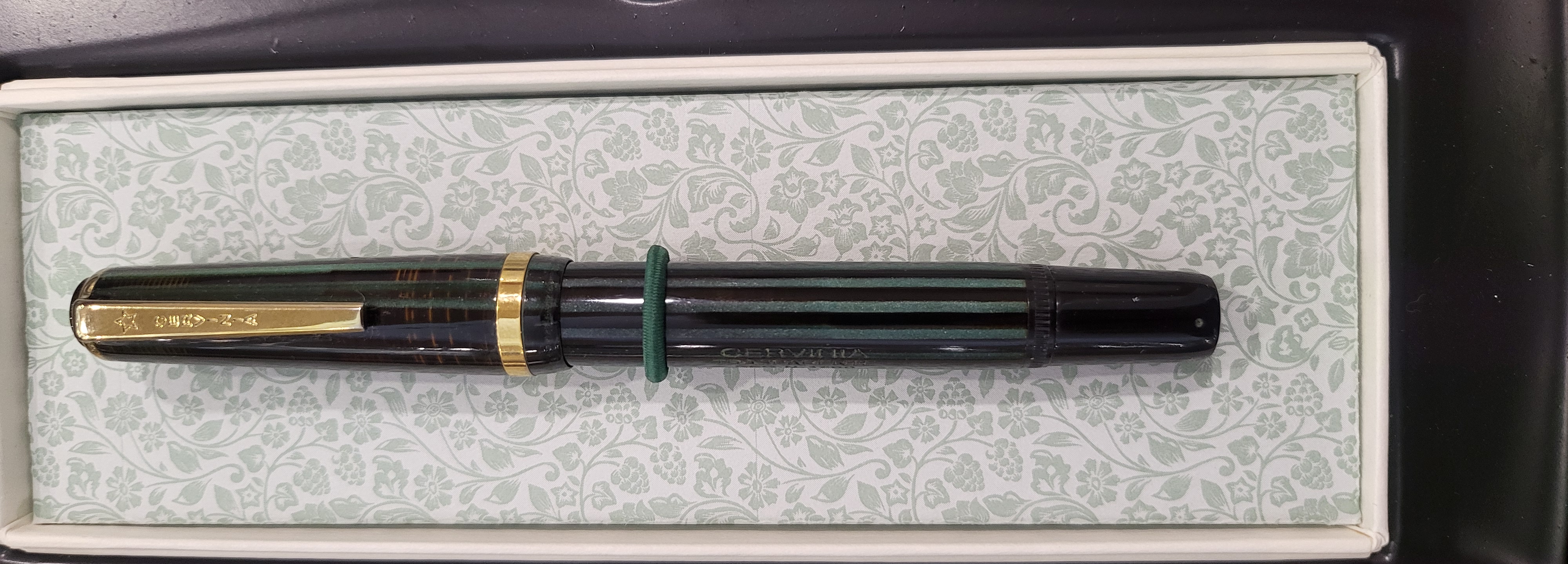 Ieri ho incontrato un amico che colleziona anche penne e mi ha dato il permesso di condividere il suo ultimo acquisto: una bellissima Cervinia, nascosta in guerra e poi ritrovata, ora assemblata da Stipula.
