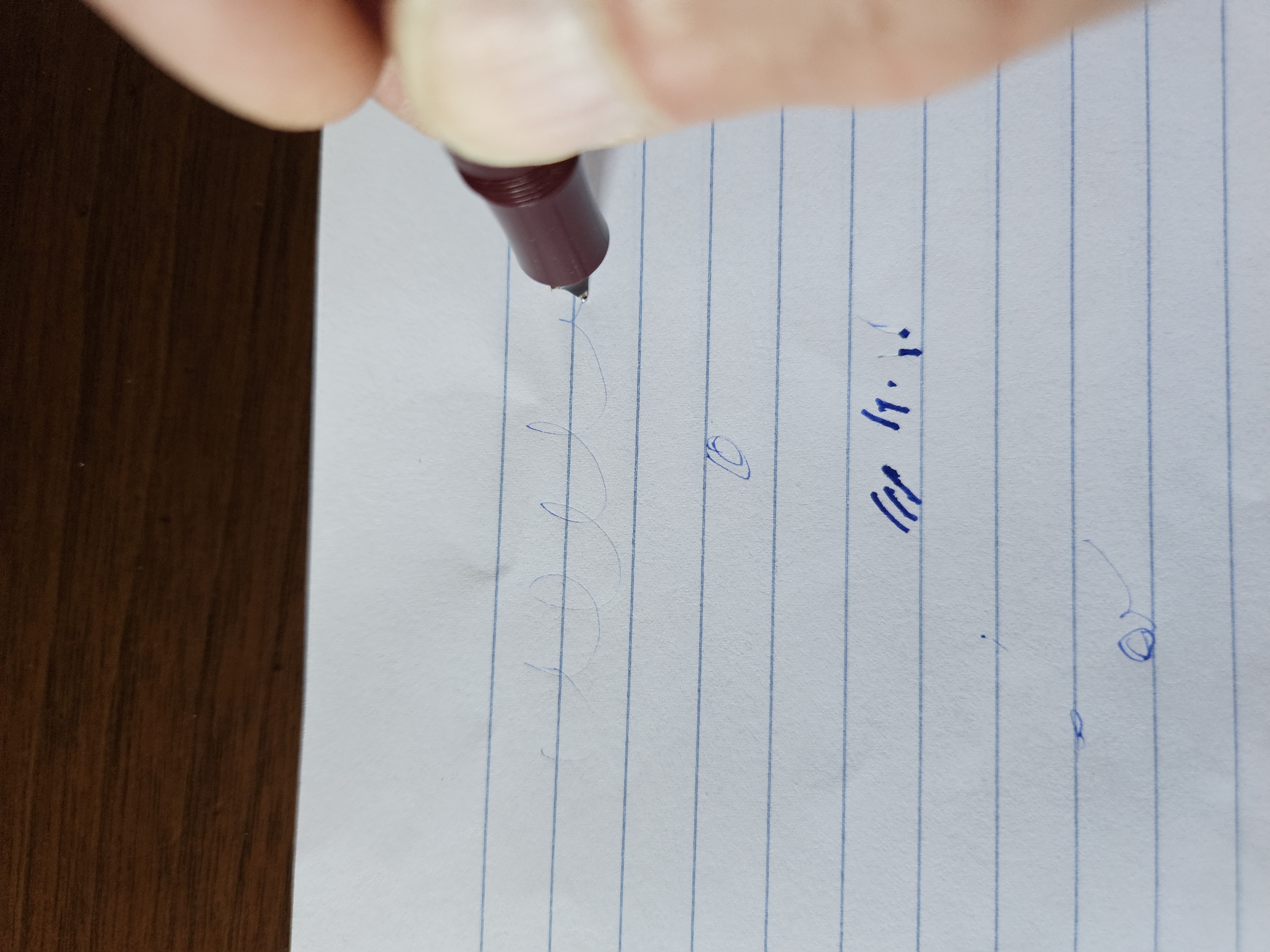 Quindi ricapitolando, Nella prima immagine scrive, nella seconda con il pennino appena appena ruotato rispetto alla prima immagine non scrive, e nella terza immagine con il pennino appoggiato al foglio perpendicolare non scrive neanche per idea.