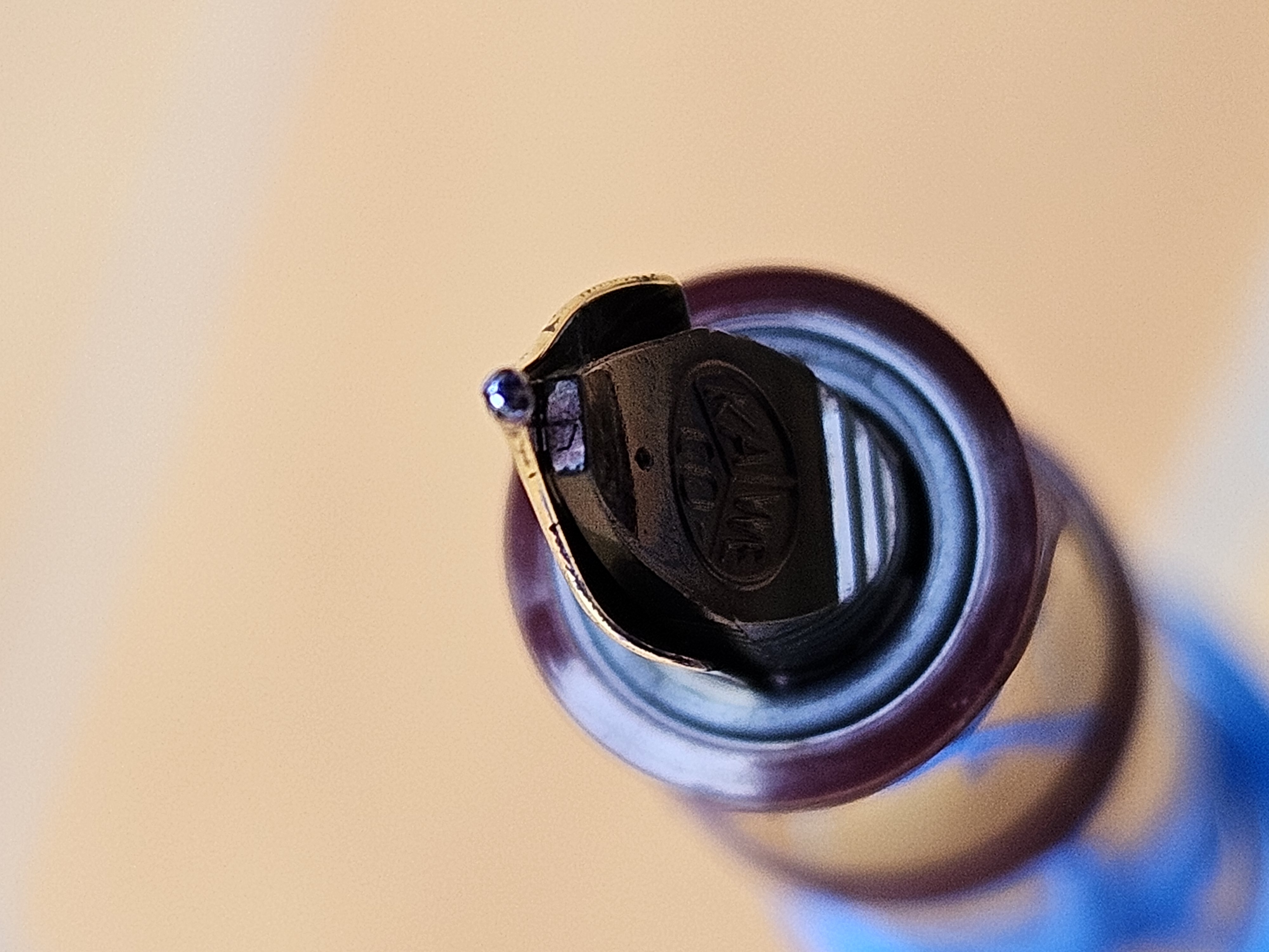 Ora vedo che la cartuccia Pelican non mi sembra proprio "ben fissa", quindi ho messo una molla tra la cartuccia e il fusto avvitato, per evitare appunto che la cartuccia si scolleghi, e faccia un disastro.