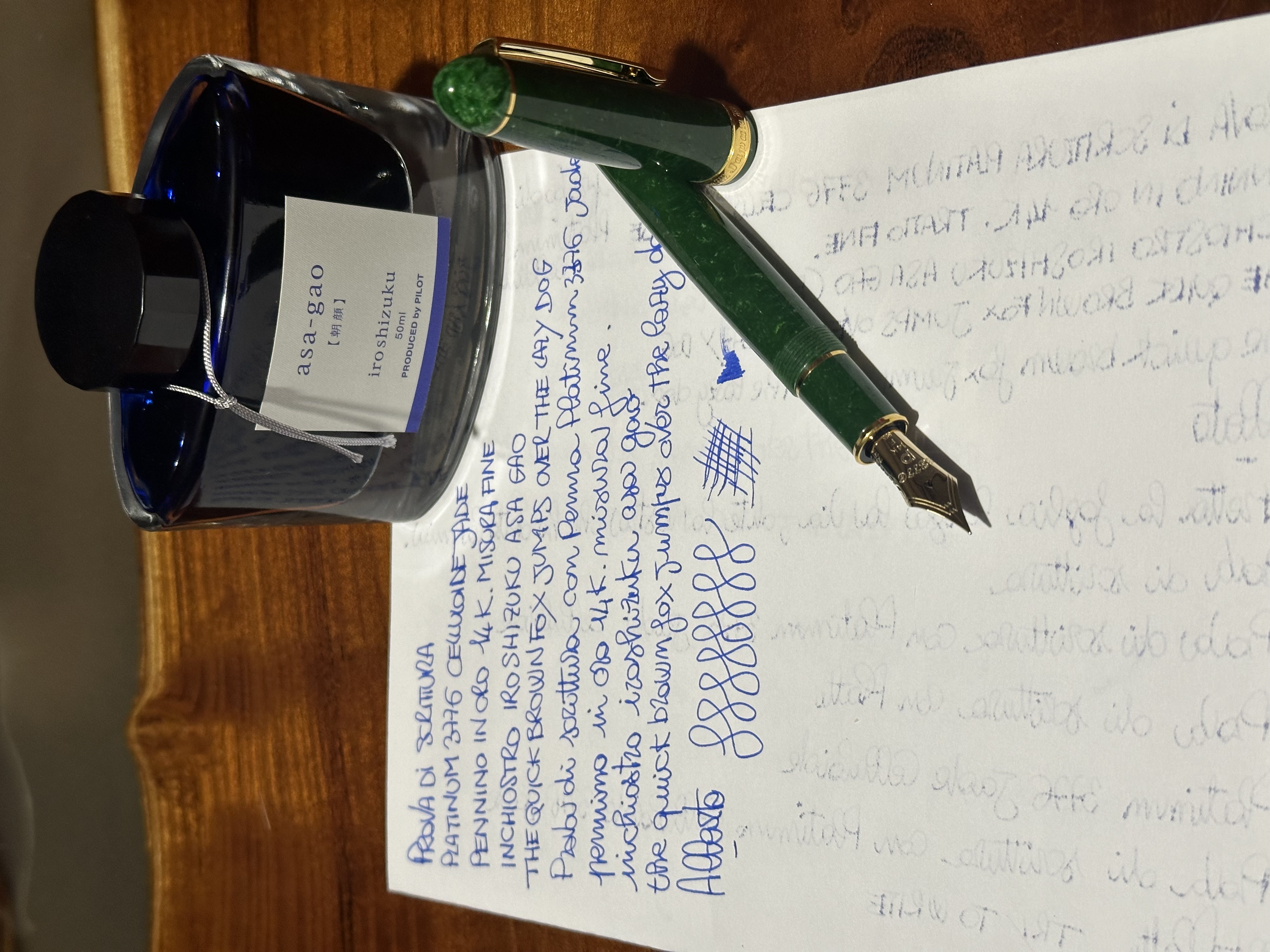 Le penne Platinum sono totalmente diverse dai classici pennini in oro europei, andrebbero usati come una matita per gli schizzi ( quindi mano leggera) perché tendono a scrivere meglio se lasciati sotto il proprio peso o il peso della manoKmu48 ha scritto: ↑mercoledì 11 settembre 2024, 11:05Sto facendo diverse prove e grazie al consiglio va meglio anche se tendo ad avere la mano sempre un tantino pesante. Il pennino è rigido ma ho visto che con una certa pressione tende a molleggiare un po’RisottoPensa ha scritto: ↑martedì 10 settembre 2024, 23:05