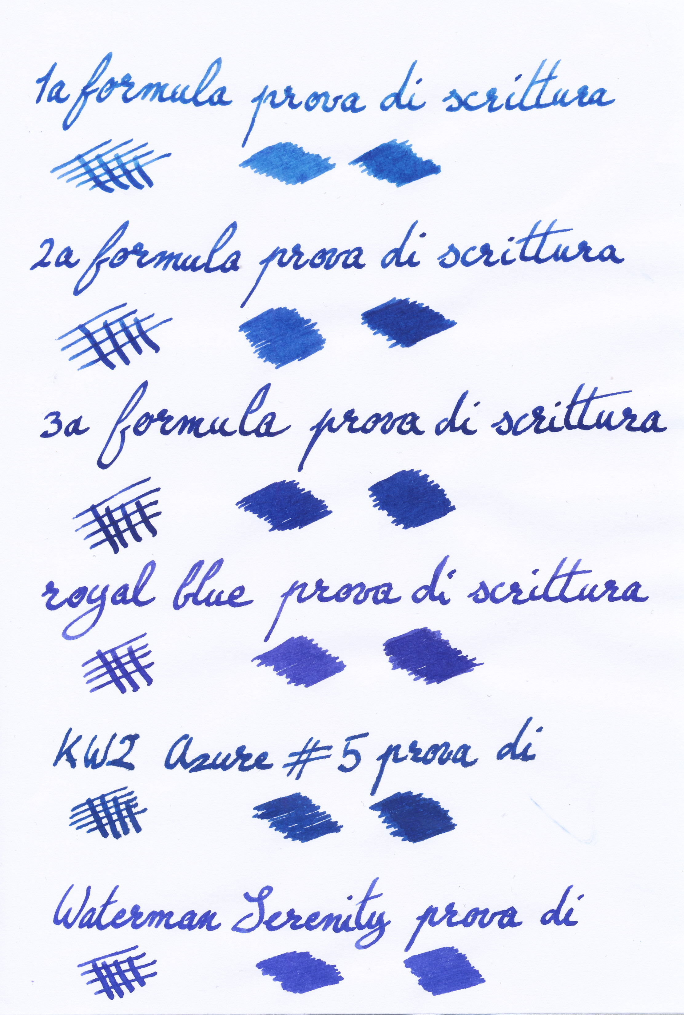 grazie, la 2a e 3a formula sembrano proprio inchiostri diversi. Il tono di blu è lo stesso ma la saturazione molto diversa, la 3a formula è quasi un blu scuro anche se non scurissimo.
