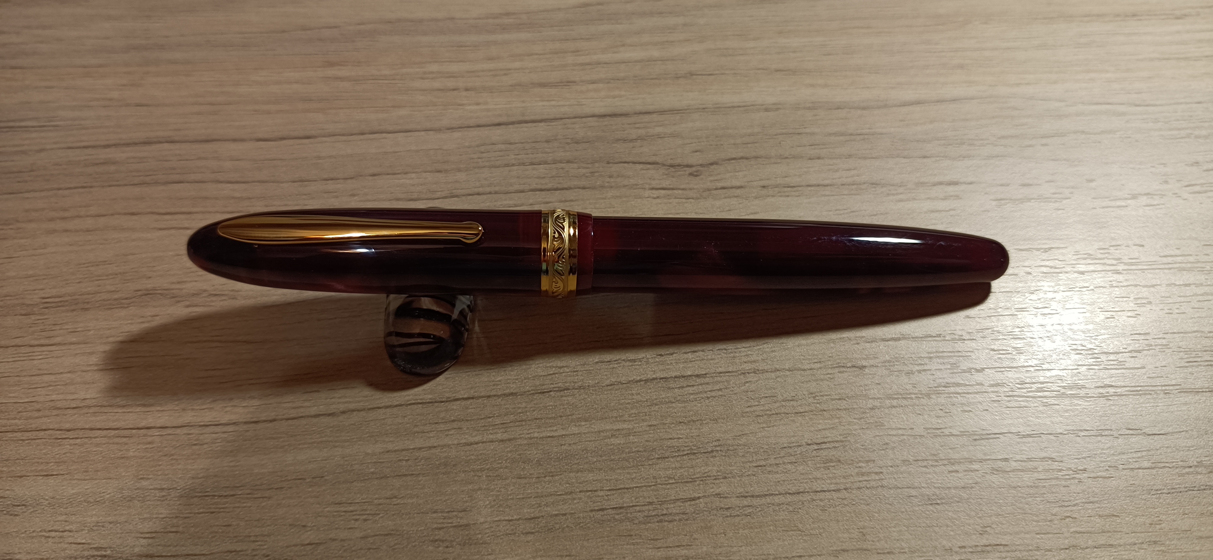 In conclusione, si tratta di una penna veramente ben fatta, considerando la spesa (circa 38 euro con il pennino “刃 M”, verso i 30 con il pennino standard extrafine) è stato veramente un buon acquisto. Forse il vantaggio principale è quello di poter provare la sensazione di un pennino naginata senza prendere un purosangue Sailor (che costa ben più di dieci volte tanto) o un grinding da un super nibmeister che si fa pagare tanto (sicuramente più del costo di tutta questa penna). I cinesi sono riusciti a sorprendermi con questo primo acquisto, spero che ne seguiranno altri altrettanto azzeccati. Si tratta di modello che mostra che i produttori cinesi sono in grado di fare non solo modelli pieni di anellini e verette (francamente inguardabili per me), ma anche penne più semplici e sobrie, e di produrre belle resine che visivamente non hanno niente da invidiare a quelle prodotte e lavorate in Italia. Adesso il prossimo passo sarà l’altro tipo di naginata, il “long blade” montato ad esempio sulla N6 (dovrebbe essere un po’ più largo come tratto di partenza) e poi forse un giorno mi deciderò a prenderne uno un po’ più “serio”.