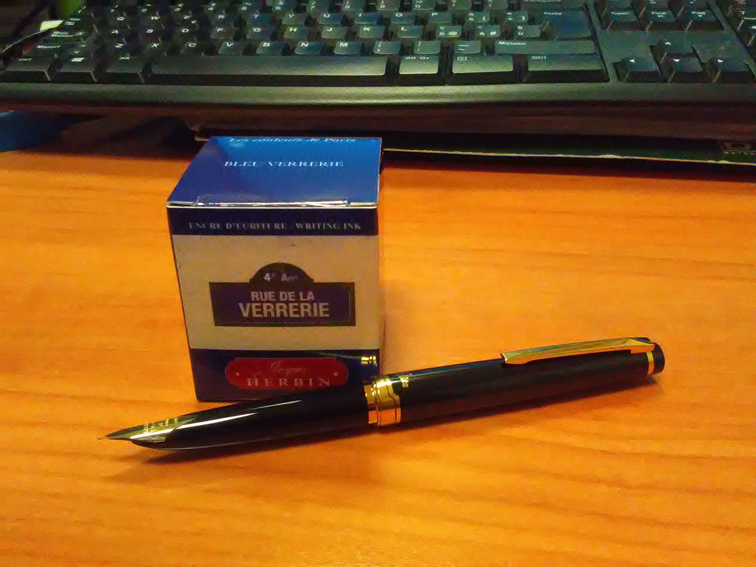 L' Elite che ho con il pennino M non mi soddisfa e allora ho preso questa con il pennino F, meglio, poi volevo provare questo blu della Herbin
