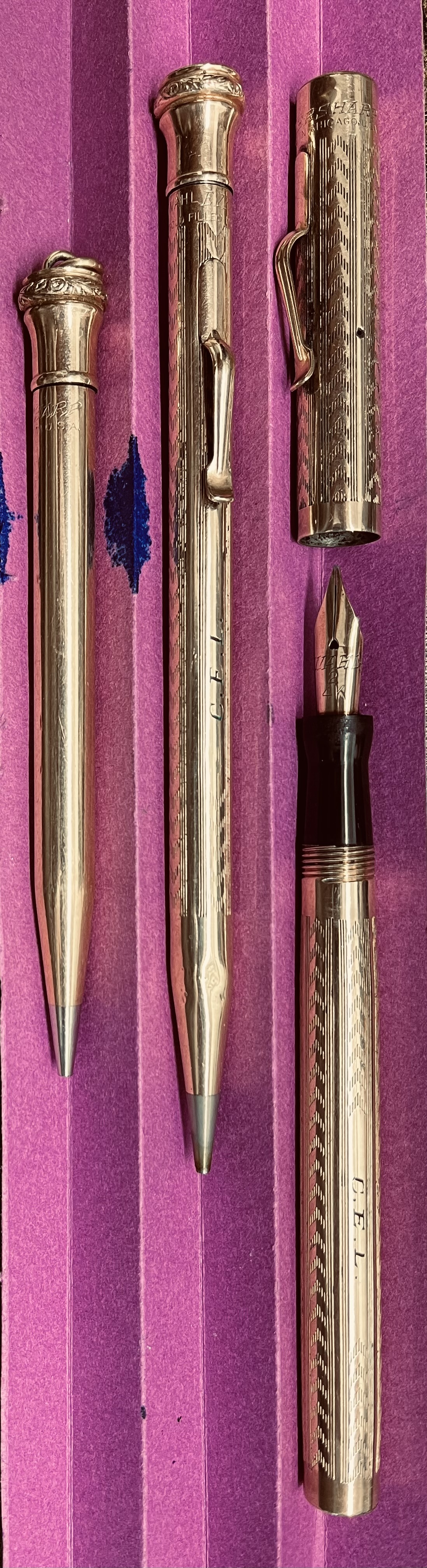 A sera ricevo la fattura del lotto acquisito. Tre utensili da scrittura Wahl Eversharp, due matite ed una stilo. Tutte e tre 'gold filled'. La stilo non ha l'anima in ebanite, è tutta in metallo e cosi' pure le matite.