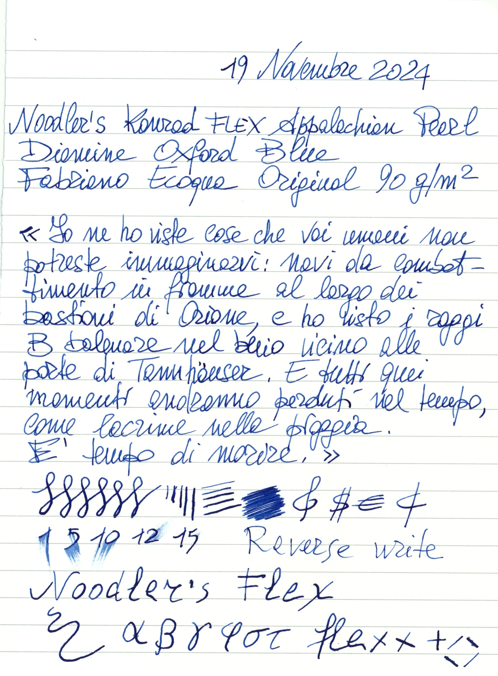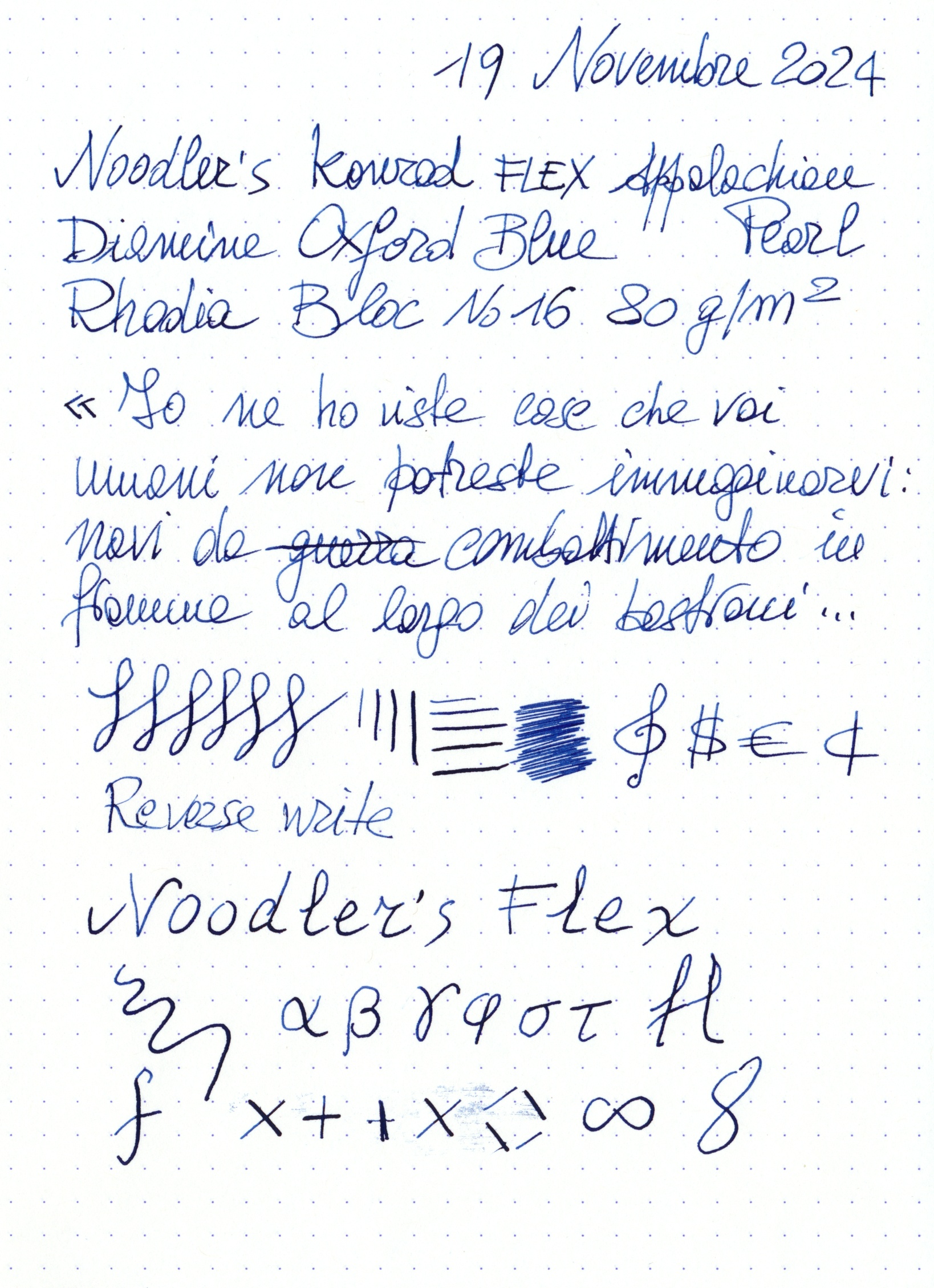 Ecco un paio di prove di scrittura (chiedo scusa se un poco "approssimative"): Noodler's & Diamine Oxford Blue.mastrogigino ha scritto: ↑martedì 19 novembre 2024, 8:19Complimenti!![]()