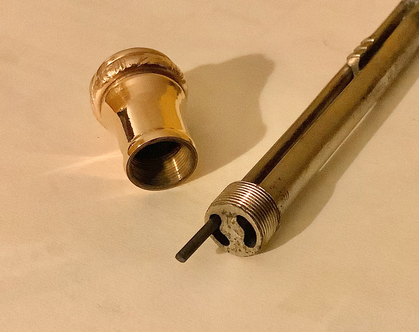 Il funzionamento è molto semplice, sulla falsariga di quello riportato per quest'altra matita viewtopic.php?p=337043#p337043, composto da una barretta mobile che spinge verso la punta la mina contenuta nella parte inferiore del fusto.