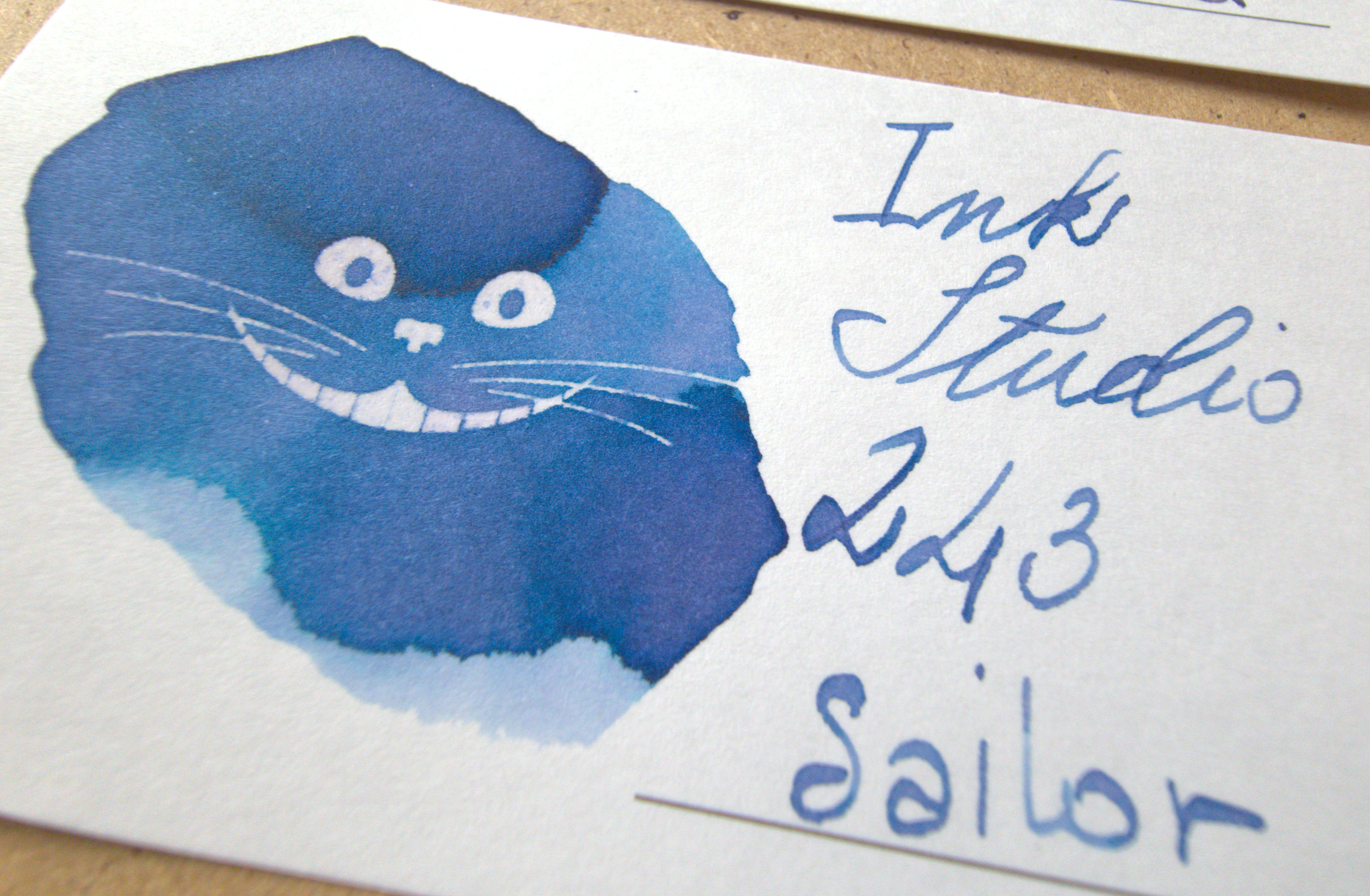 Ink Studio 243 è un blu medio neutro leggermente desaturato. Ha buona capacità di shading, basso chromashading. Non ha sheen, non ha glitter.