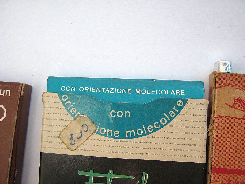 atomo/atomico/atomica, molecola, chimica, nucleare, spazio/spaziale, astronauta/astronautica, ecc... avevano il potere di evocare un prossimo futuro fatto di cose fantascientifiche (almeno a me, da bambino, convinto che negli anni duemila avrei guidato una macchina volante...), premesso tutto questo, la dicitura "orientazione molecolare" (che compare anche sulle scatolette in lingua francese ed inglese), indica semplicemente che le cartucce erano realizzate in propilene isotattico (sul forum doperebbero esserci informazioni sulle primissime cartucce Aurora in propilene isotattico per il quale il chimico Natta aveva trovato il modo di produrlo con una resa industriale elevatissima). Isotattico significa che particolari e specifici gruppi di molecole del polimero sono orientati (giacciono) su uno stesso piano del spazio e non su piani casuali, conferendo particolari proprietà fisiche al polimero.
